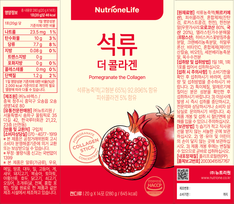 | 제품명 | 석류 더 콜라겐 | 식품의 유형 | 캔디류 |