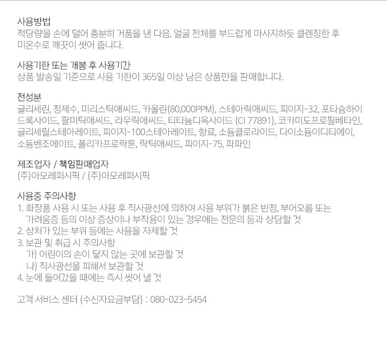| 화장품제조업자, 화장품책임판매업자 및 맞춤형화장품판매업자 | (주)아모레퍼시픽 | 제조국 | 대한민국 |