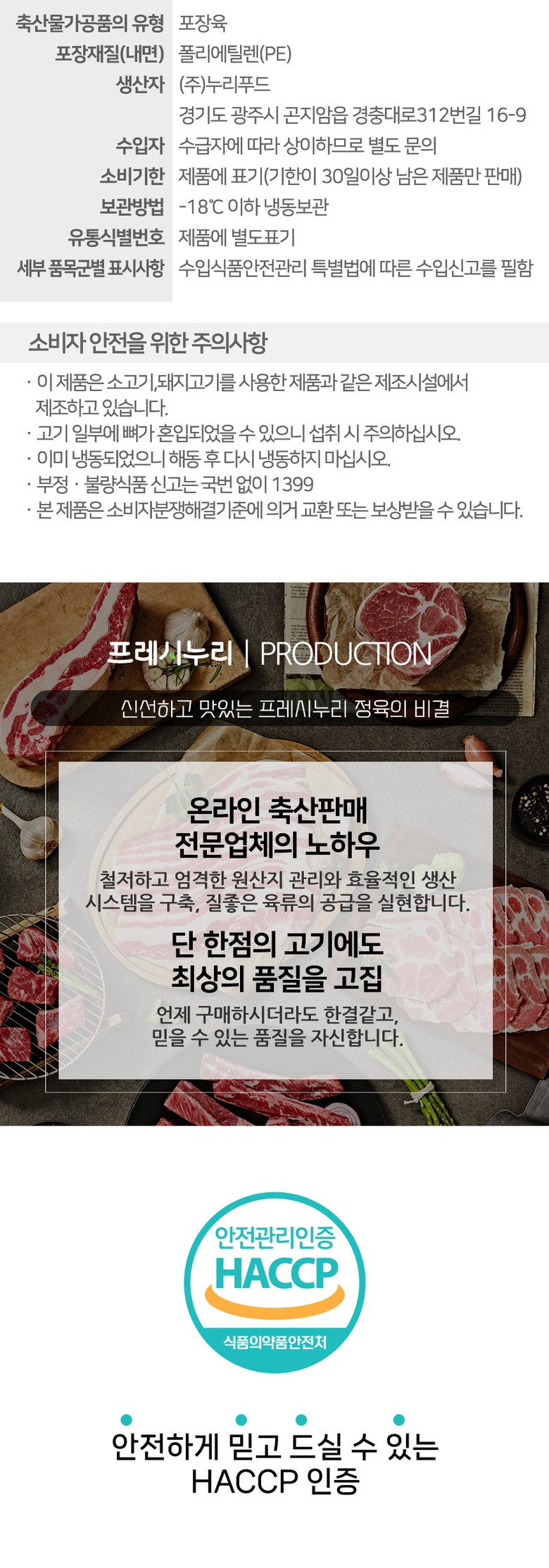 | 제조연월일, 소비기한 또는 품질유지기한 | 상세페이지 참고 | 세부 품목군별 표시사항 | 상세페이지 참고 |
