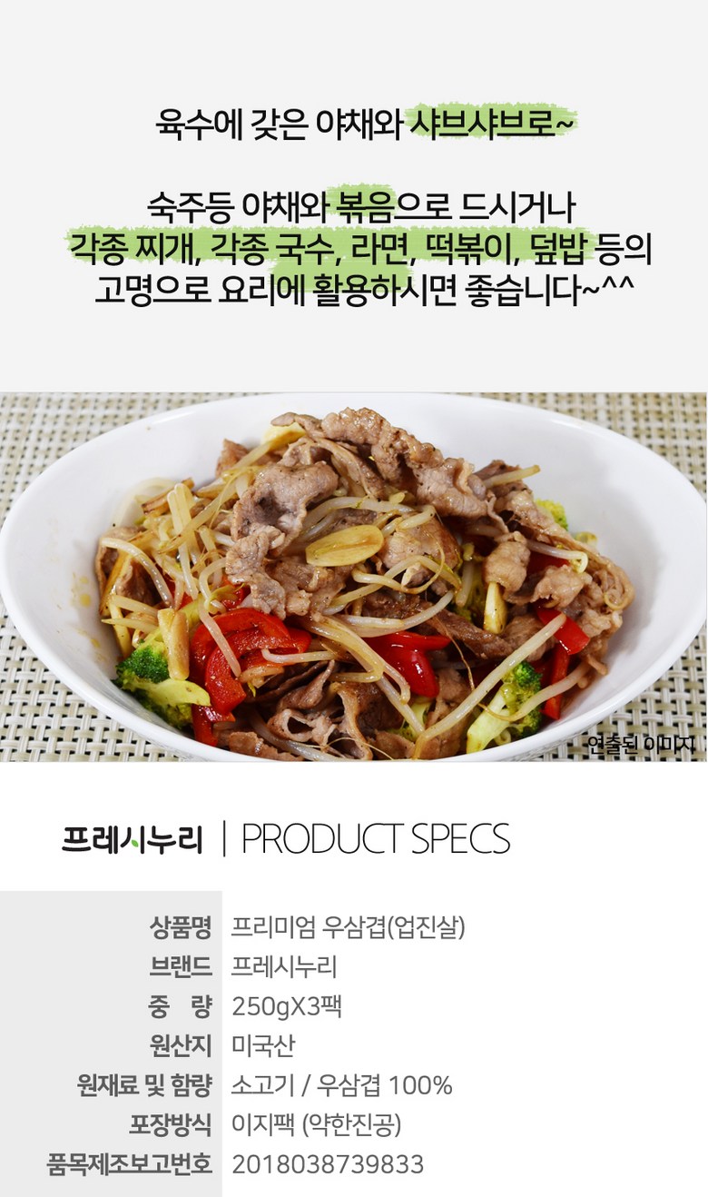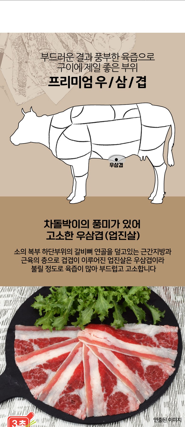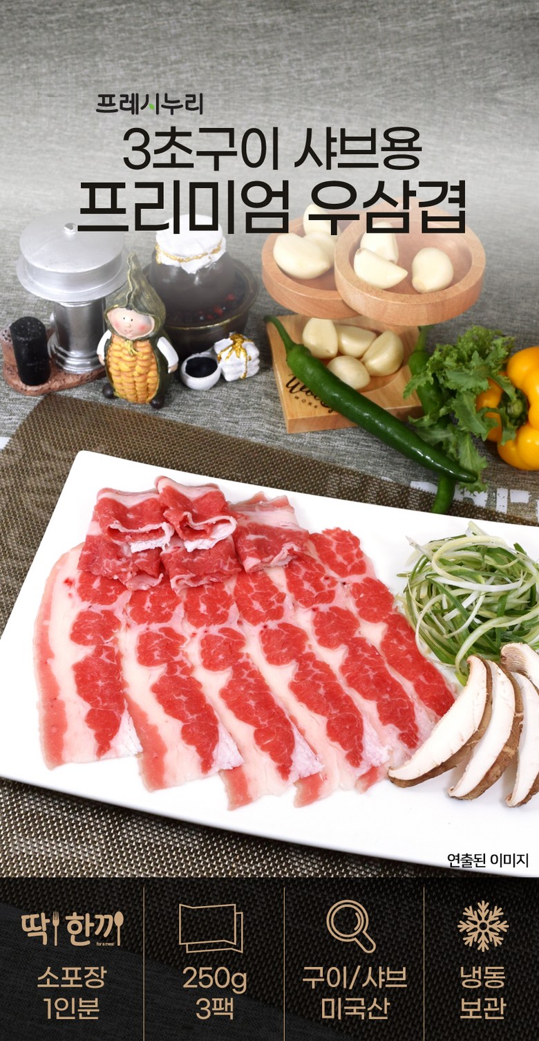 중량 × 수량: 프리미엄 우삼겹(3초구이 샤브용) 250gX3팩 × 1개