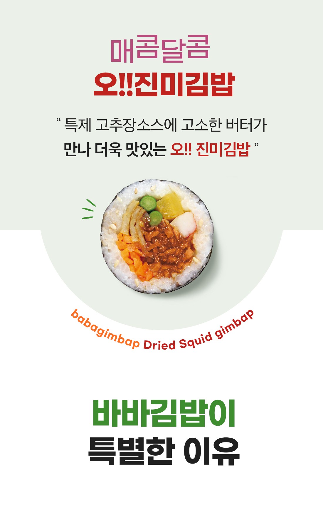 고슬고슬한 쌀과 풍성한 재료가 한 데 모여 조화로운 맛을 내는 김밥이에요. 진미채볶음의 쫄깃쫄깃한 식감이 먹는 재미를 더하죠. 매콤 달콤한 풍미는 마지막 한 입까지 즐거운 한 끼를 선사해요. 반찬을 준비하는 번거로움 없이 간편하게 조리해 든든한 한 끼를 즐겨보세요.