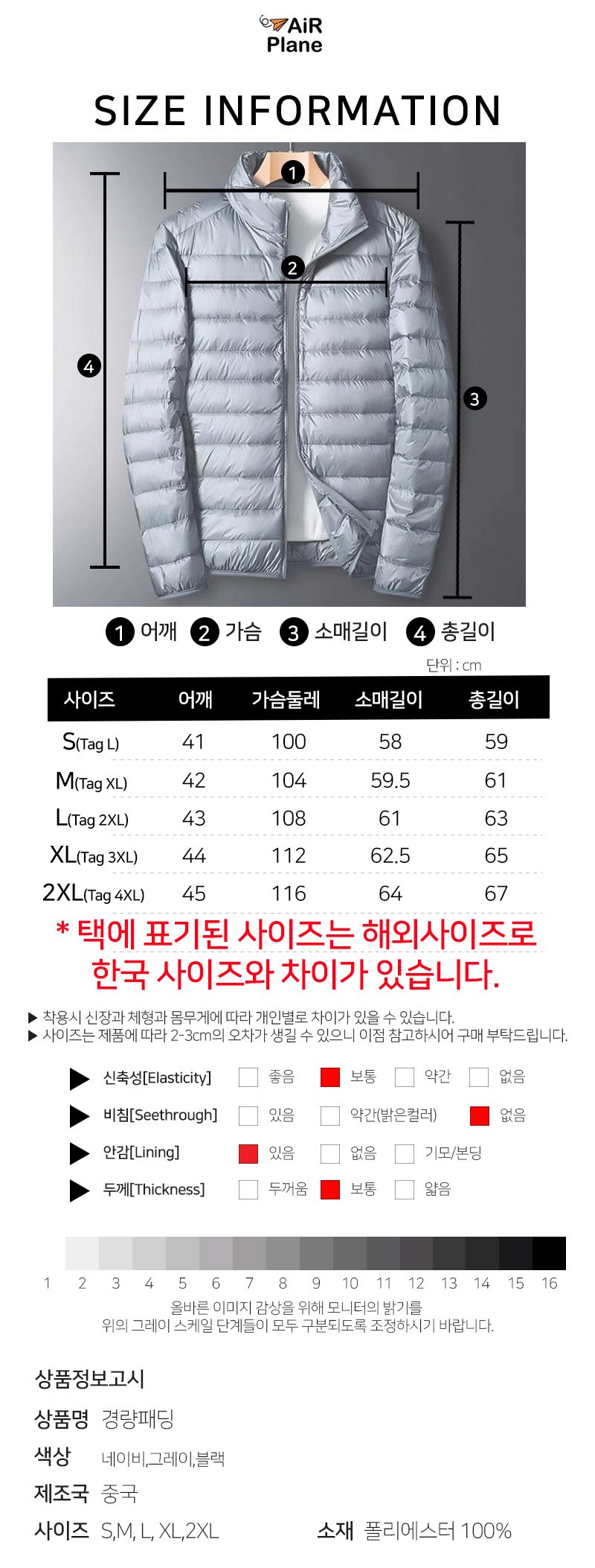 - 상의 사이즈: 남성 XL (105)