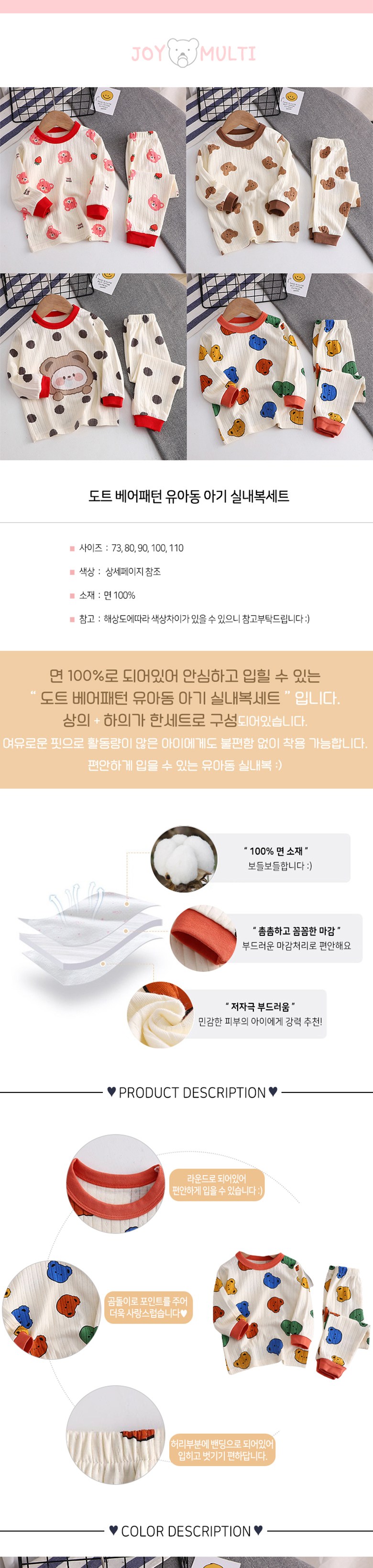| 품명 및 모델명 | 도트 베어패턴 유아동 아기 실내복세트_도트곰_80 | KC 인증정보 | CB014R235-0005 |