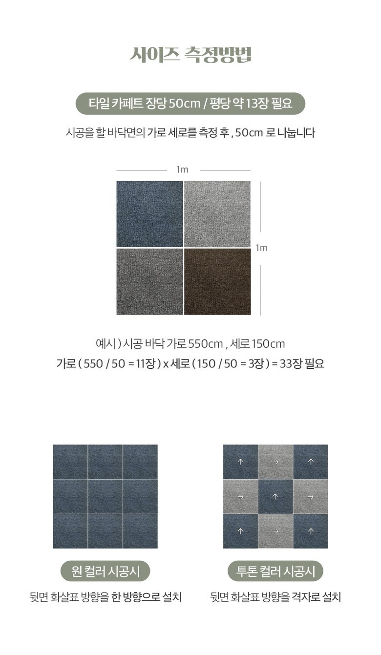 | 치수 | 50cm x 50cm | 제품구성 | 본품 20p + 겔 미끄럼스티커 + 사각 스티커 |