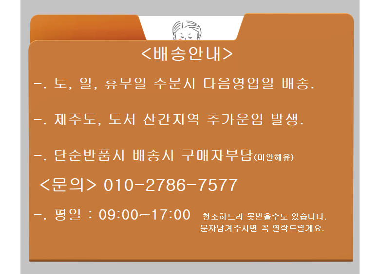 - ㆍ모니터 해상도의 차이로 인해 색상이나 이미지가 실제와 달라, 고객이 단순 변심으로 교환/반품을 무료로 요청하는 경우