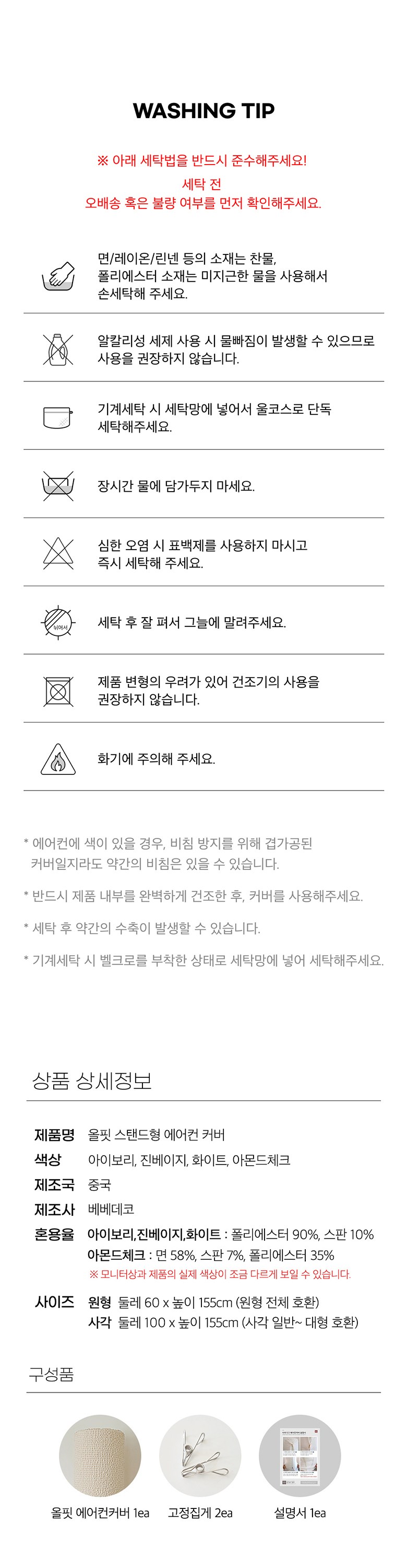 - 에어컨커버형태: 원형스탠드형