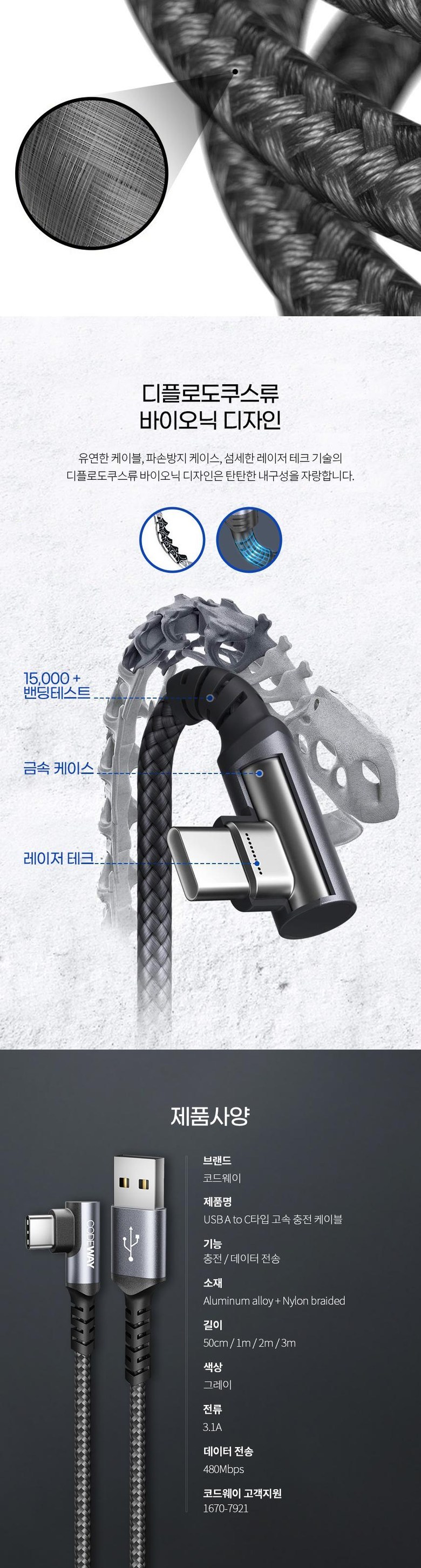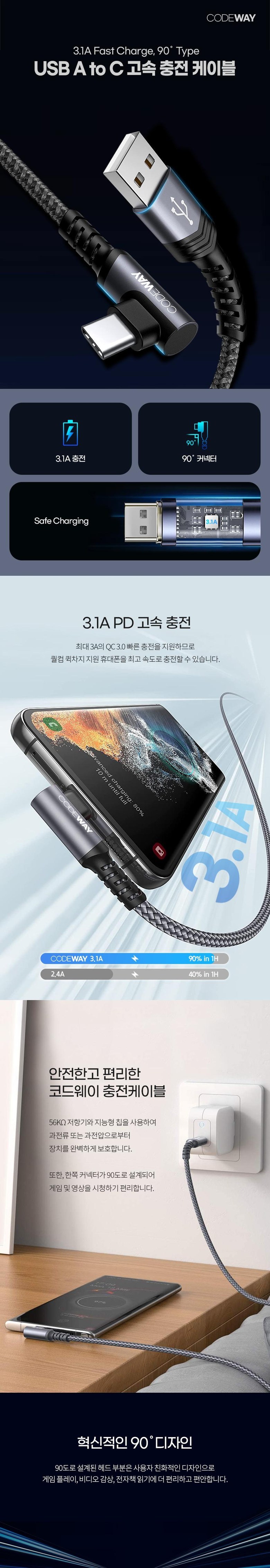 | 품명 및 모델명 | 코드웨이 USB A to C타입 고속 충전 케이블 | 인증/허가 사항 | 해당없음 |