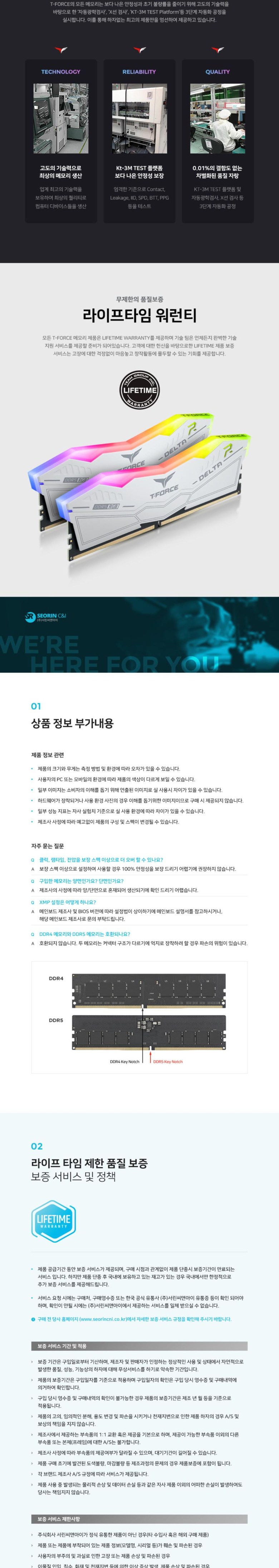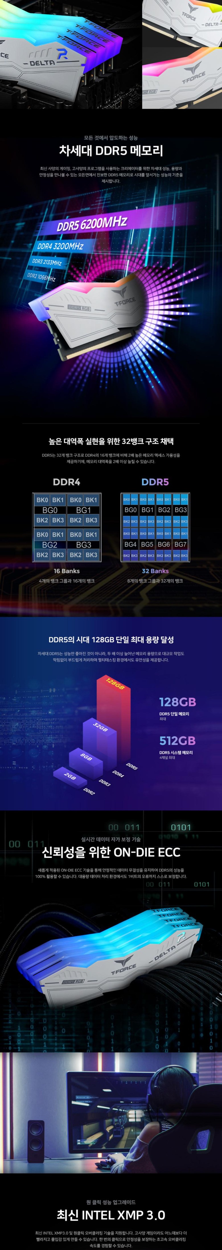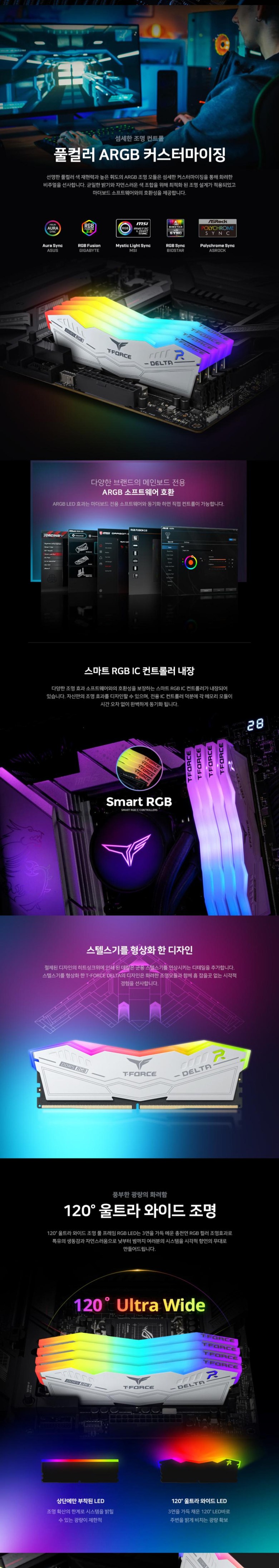 TeamGroup T-Force DDR5-5600 CL36 DELTA RGB 화이트 32GB (16Gx2)