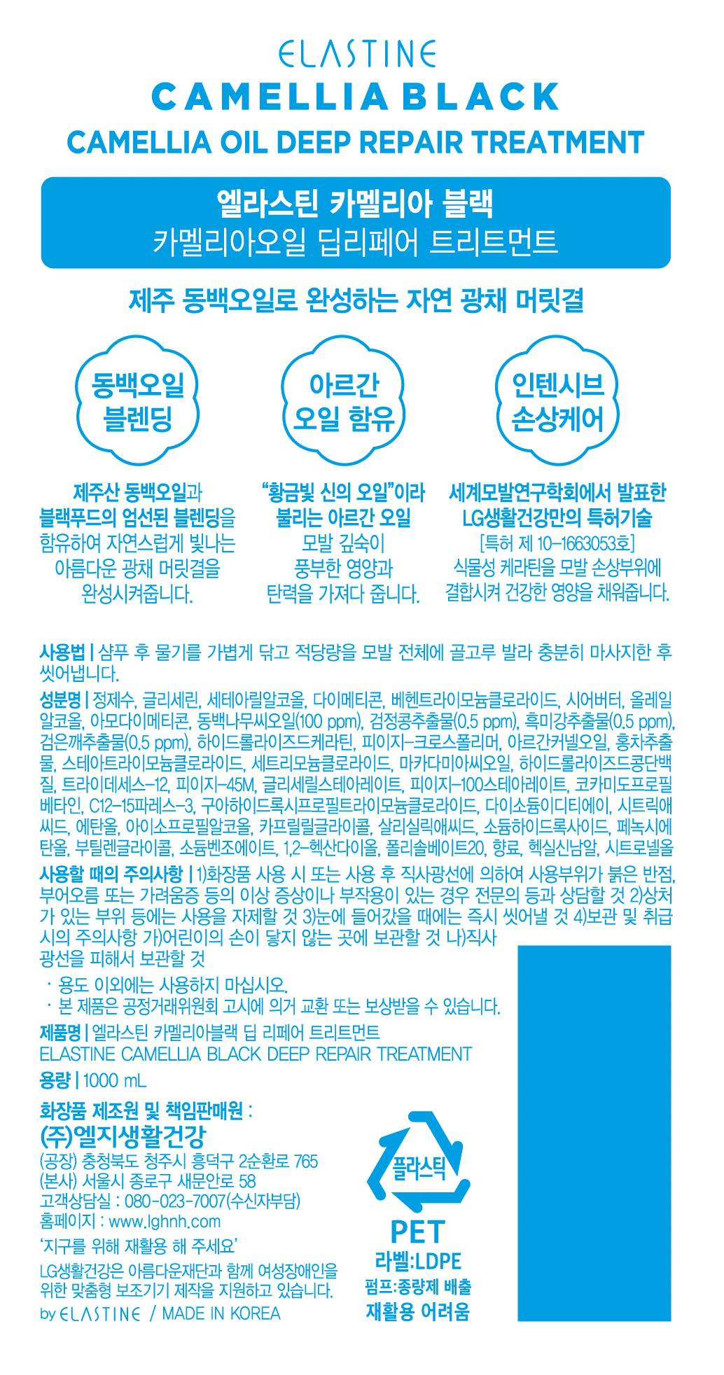 | 용량(중량) | 컨텐츠 참조 | 제품 주요 사양 | 모든 모발용 |