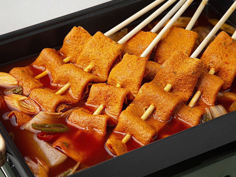 날이 추워지면 유독 생각나는 요리, 꼬치 어묵이에요. 꼬치에 꽂은 어묵과 동봉된 소스로 간편하게 요리할 수 있지요. 칼칼하고 얼큰한 풍미의 안주가 완성된답니다. 나만의 포장마차로 친구들을 초대해보세요.