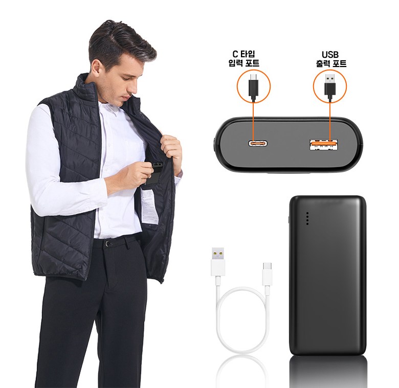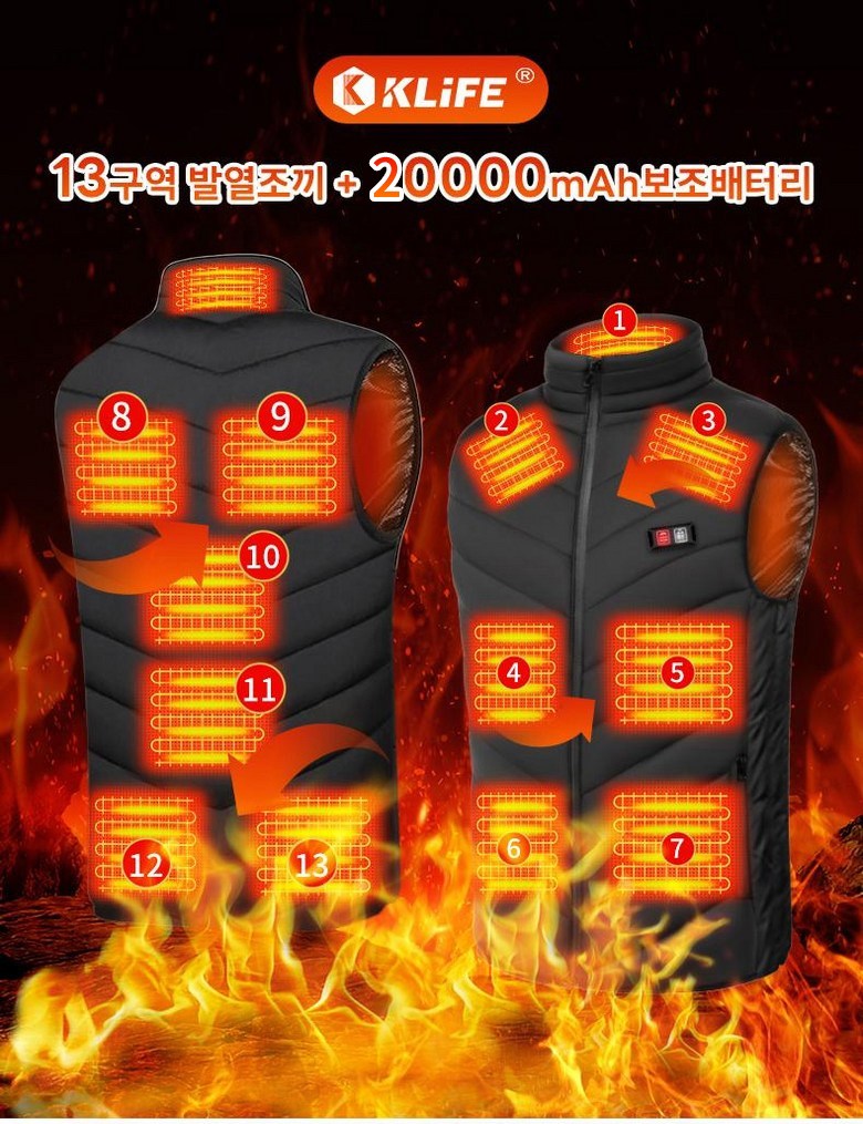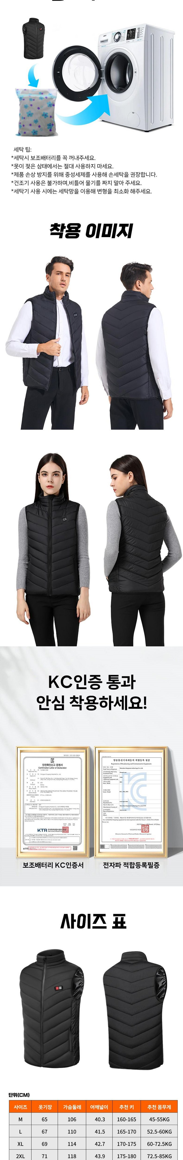 | 품명 및 모델명 | KLIFE 13구역 발열조끼 / M01+20000mAh보조배터리 | 인증/허가 사항 | 기자재 관리번호 PRNR-A24;KC인증 전기용품 안전확인 XU10903-21003A;KC인증 전기용품 공급자적합성확인 2024-0027730 ;소비전력:5W; 배터리 입력/출력:5V/2A |