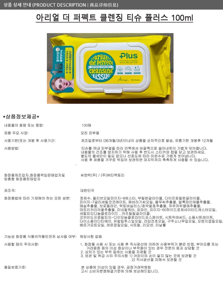 | 화장품제조업자, 화장품책임판매업자 및 맞춤형화장품판매업자 | 상품 상세페이지 참조 | 제조국 | 상품 상세페이지 참조 |
