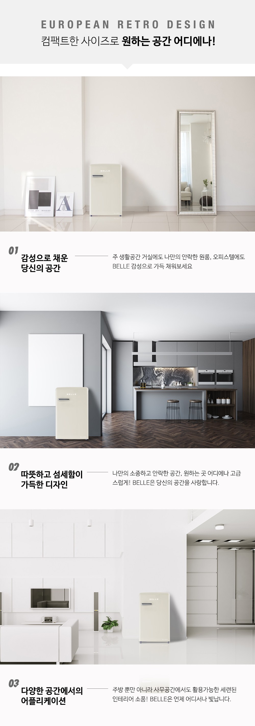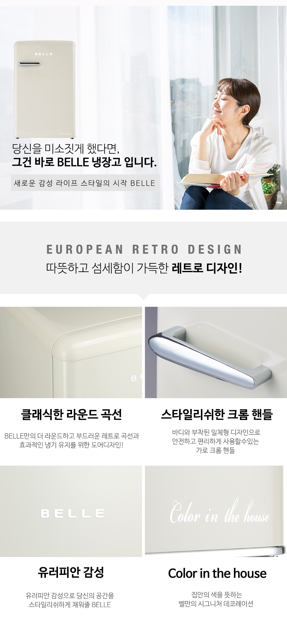 BELLE 레트로 글라스 소형 냉장고 110L 방문설치