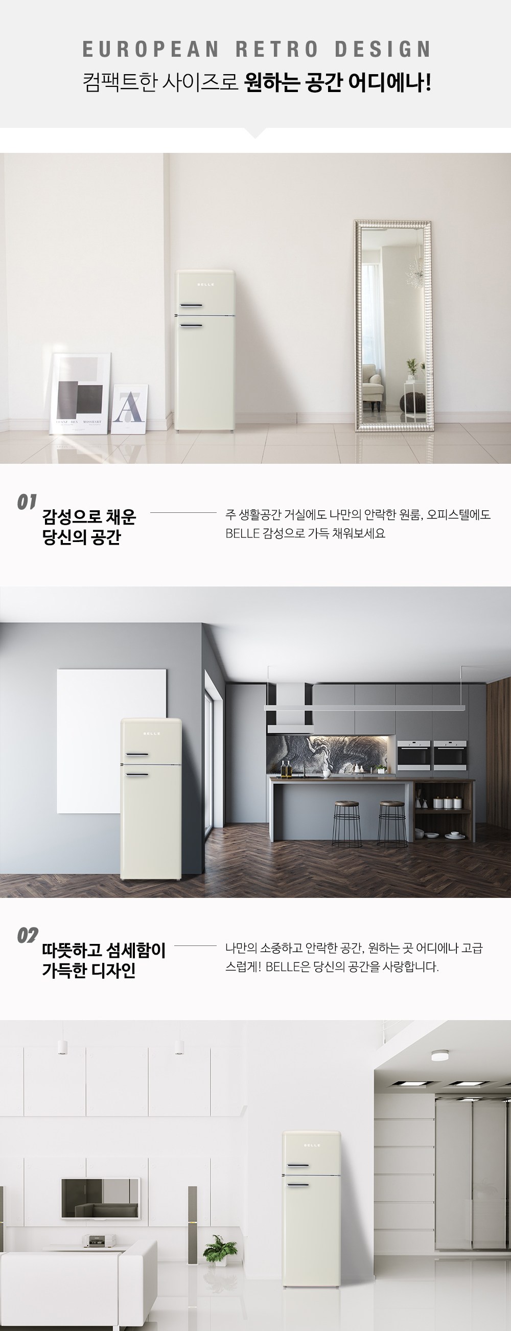 BELLE 레트로 글라스 211L 2도어 냉장고 방문설치