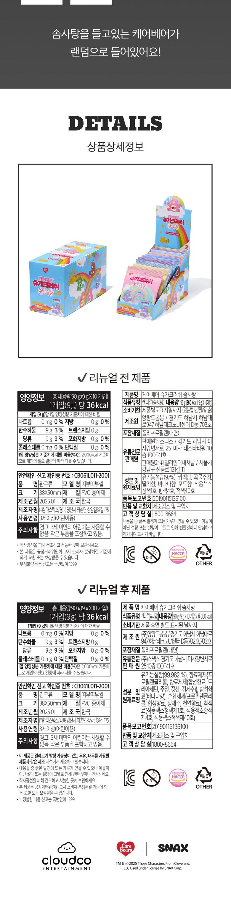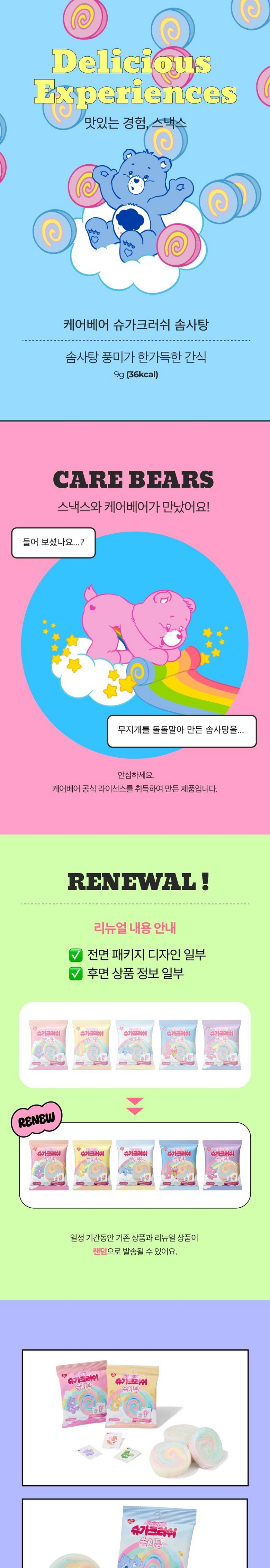 | 제품명 | 스낵스 케어베어 솜사탕 | 식품의 유형 | 솜사탕 |