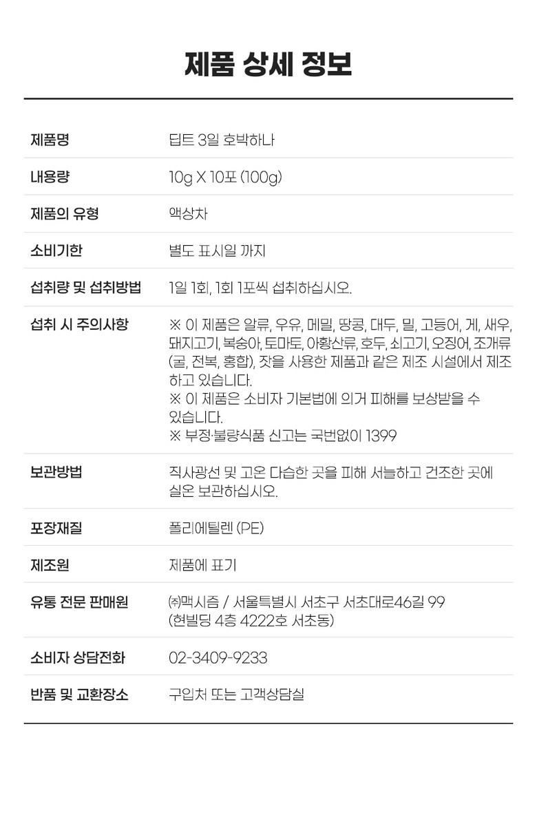 | 포장단위별 내용물의 용량(중량), 수량 | 상품 상세페이지 참조 | 원재료명 및 함량 | 상품 상세페이지 참조 |