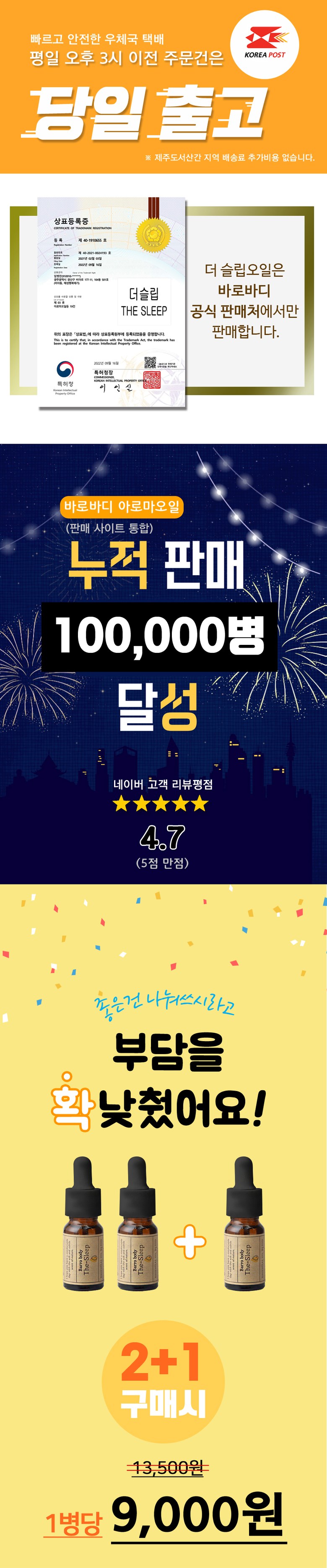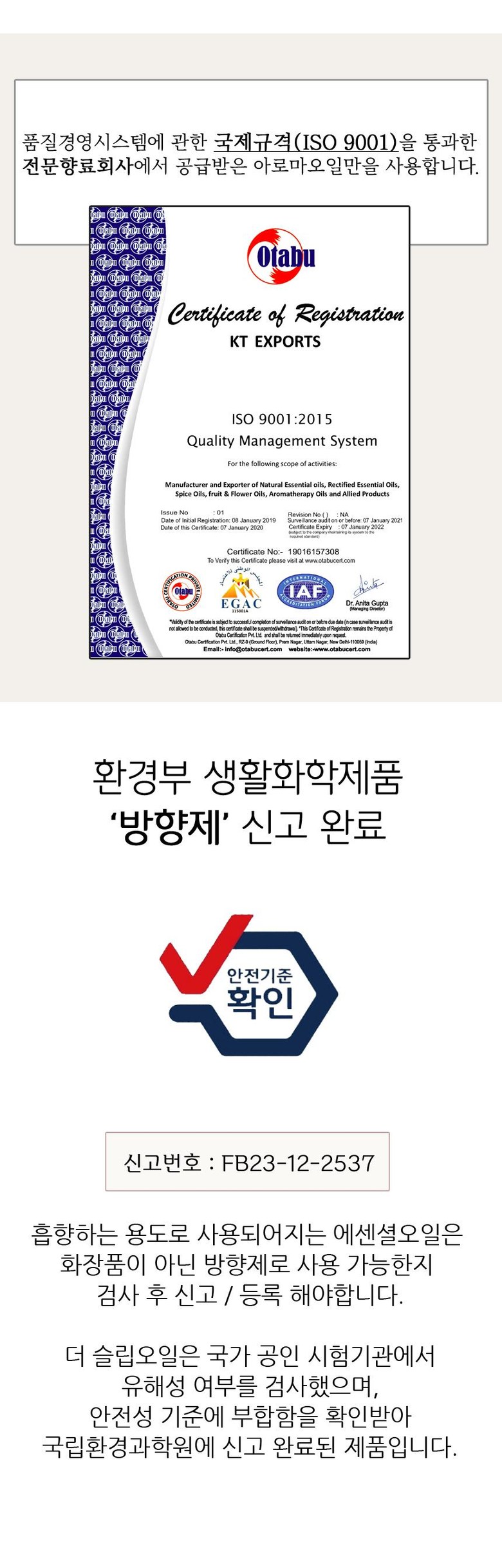 | 품명 및 모델명 | 더슬립오일 | 인증/허가 사항 | 신고번호: FB20-12-2029 |