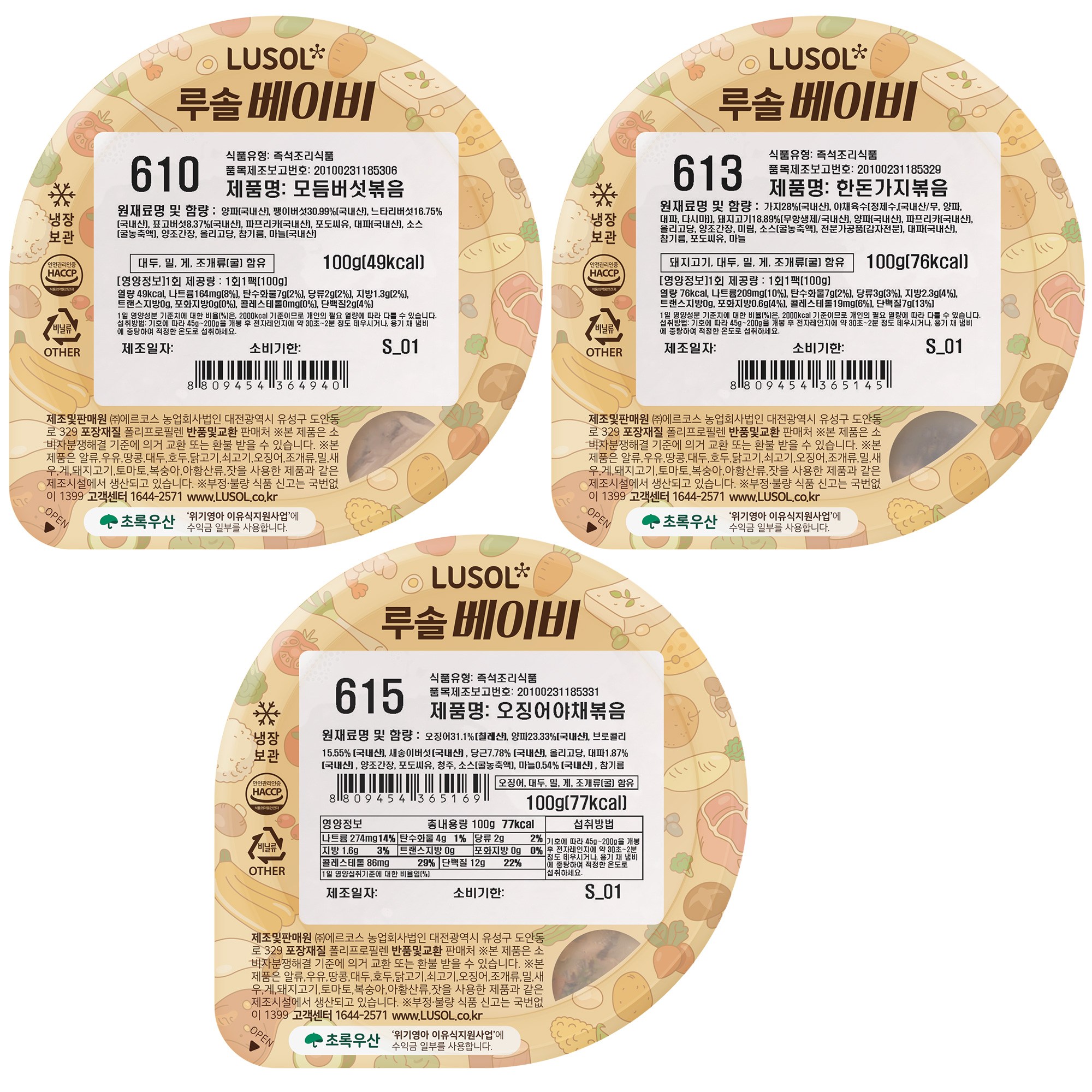 우리 아이의 식탁을 든든하게 채워 줄 볶음반찬 3종 세트예요. 모듬 버섯볶음, 가지볶음, 오징어 야채볶음으로 구성되어 풍성하지요. 부드러운 식감이 좋아 활용하기 좋답니다. 전자레인지로 조리할 수 있으니, 따뜻한 밥만 준비해 근사한 한상을 완성해보세요.