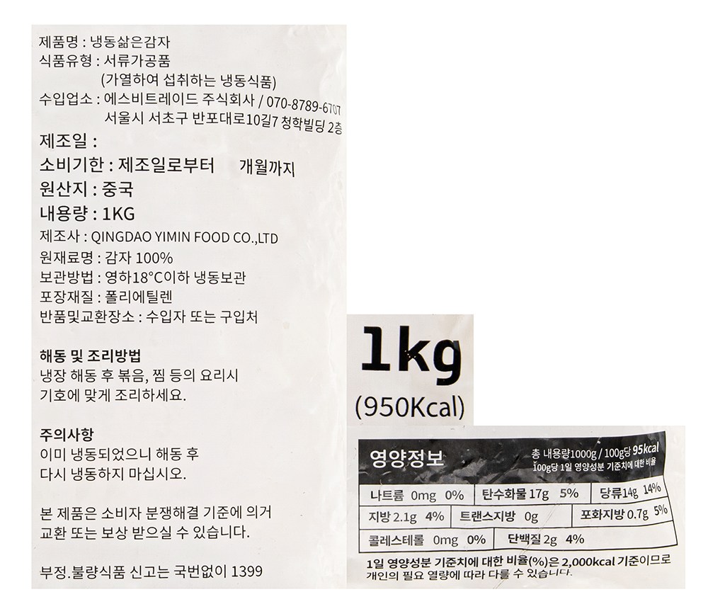 | 포장단위별 내용물의 용량(중량), 수량 | 1kg x 4개,1개 | 원재료명 및 함량 | 컨텐츠 참조 |