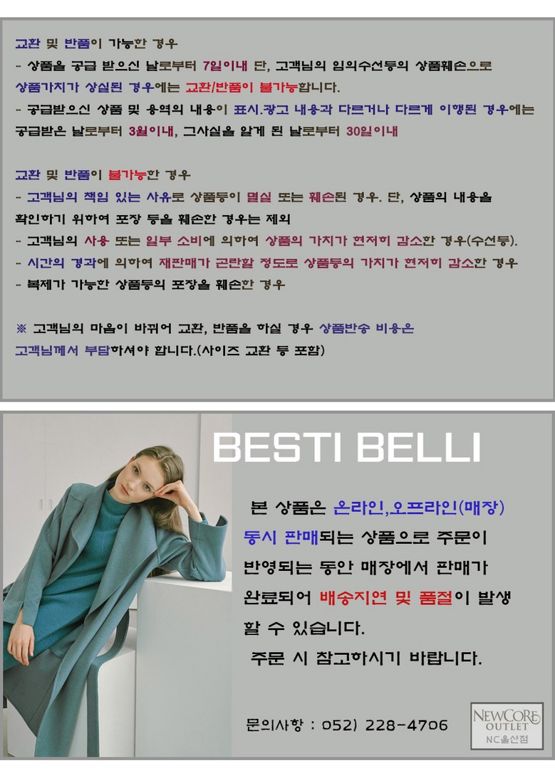 - ㆍ모니터 해상도의 차이로 인해 색상이나 이미지가 실제와 달라, 고객이 단순 변심으로 교환/반품을 무료로 요청하는 경우