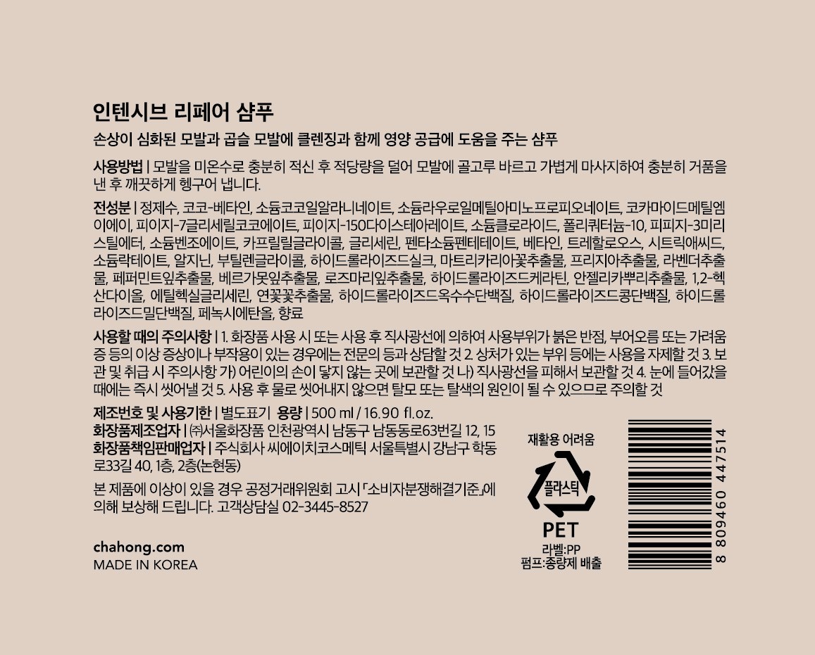 | 용량(중량) | 컨텐츠 참조 | 제품 주요 사양 | 모든 모발용 |