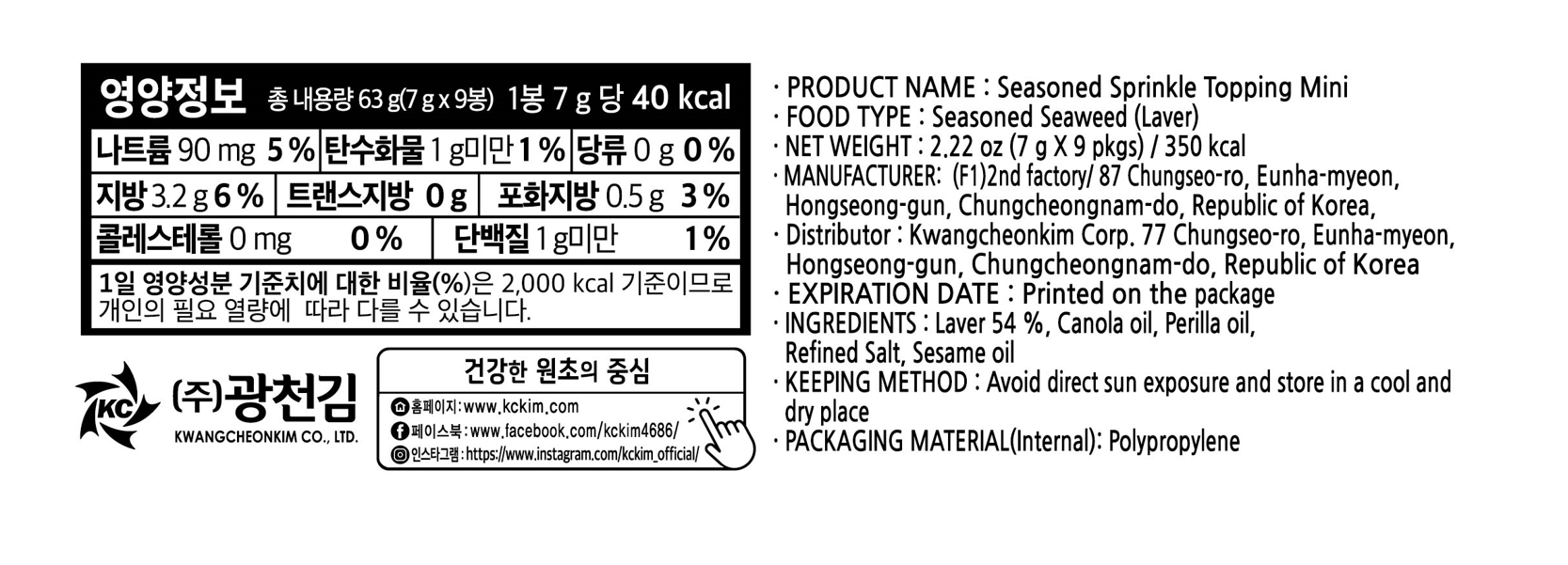| 포장단위별 내용물의 용량(중량), 수량 | 컨텐츠 참조 | 원재료명 및 함량 | 컨텐츠 참조 |
