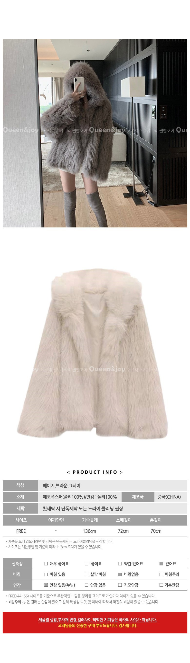 | 제조국 | 상품 상세페이지 참조 | 세탁방법 및 취급시 주의사항 | 상품 상세페이지 참조 |