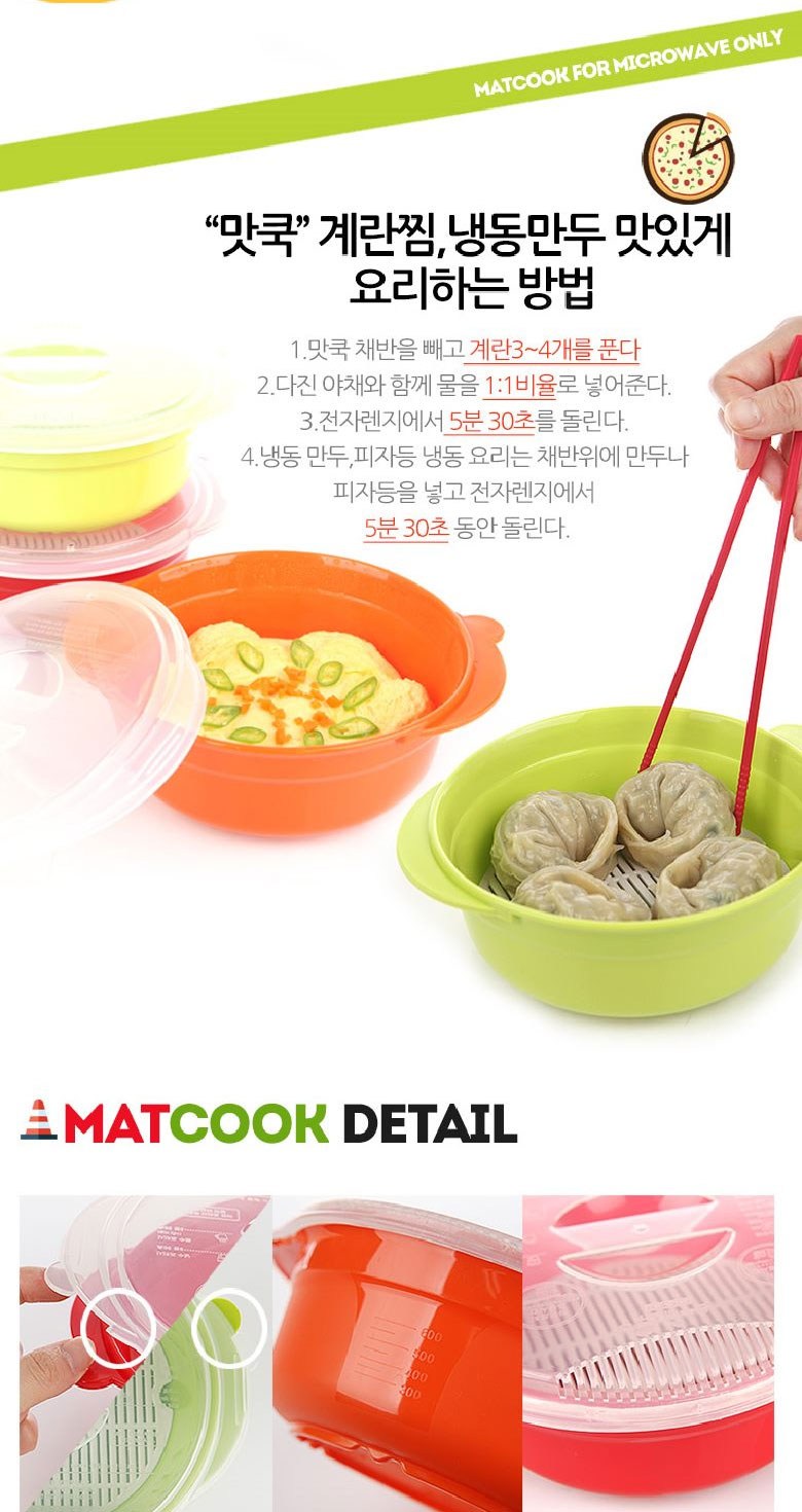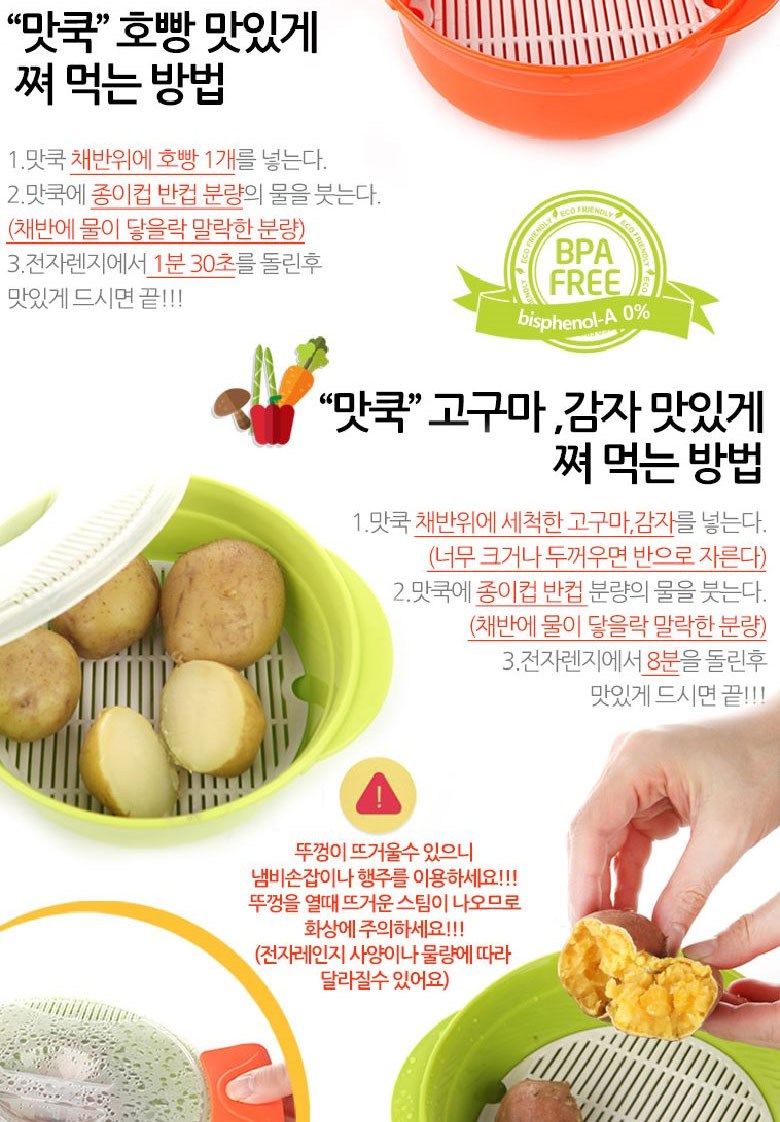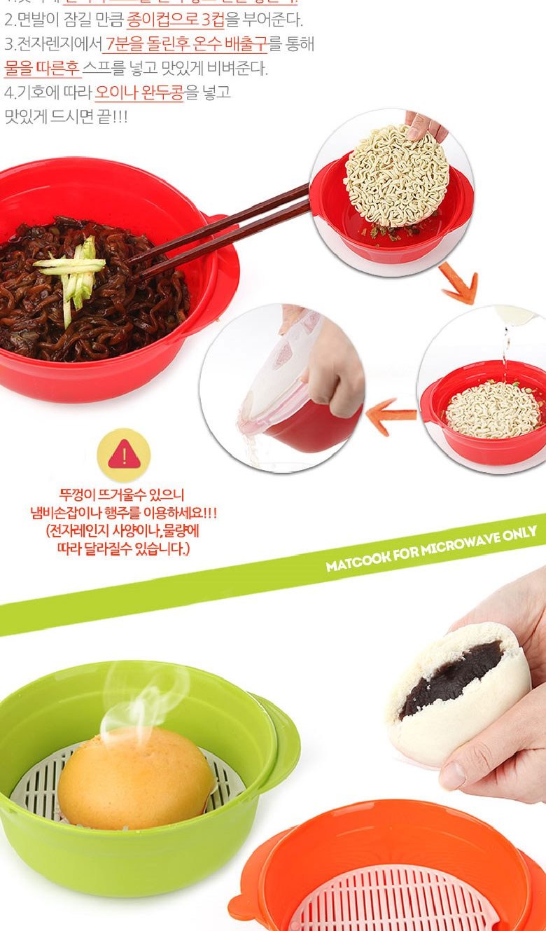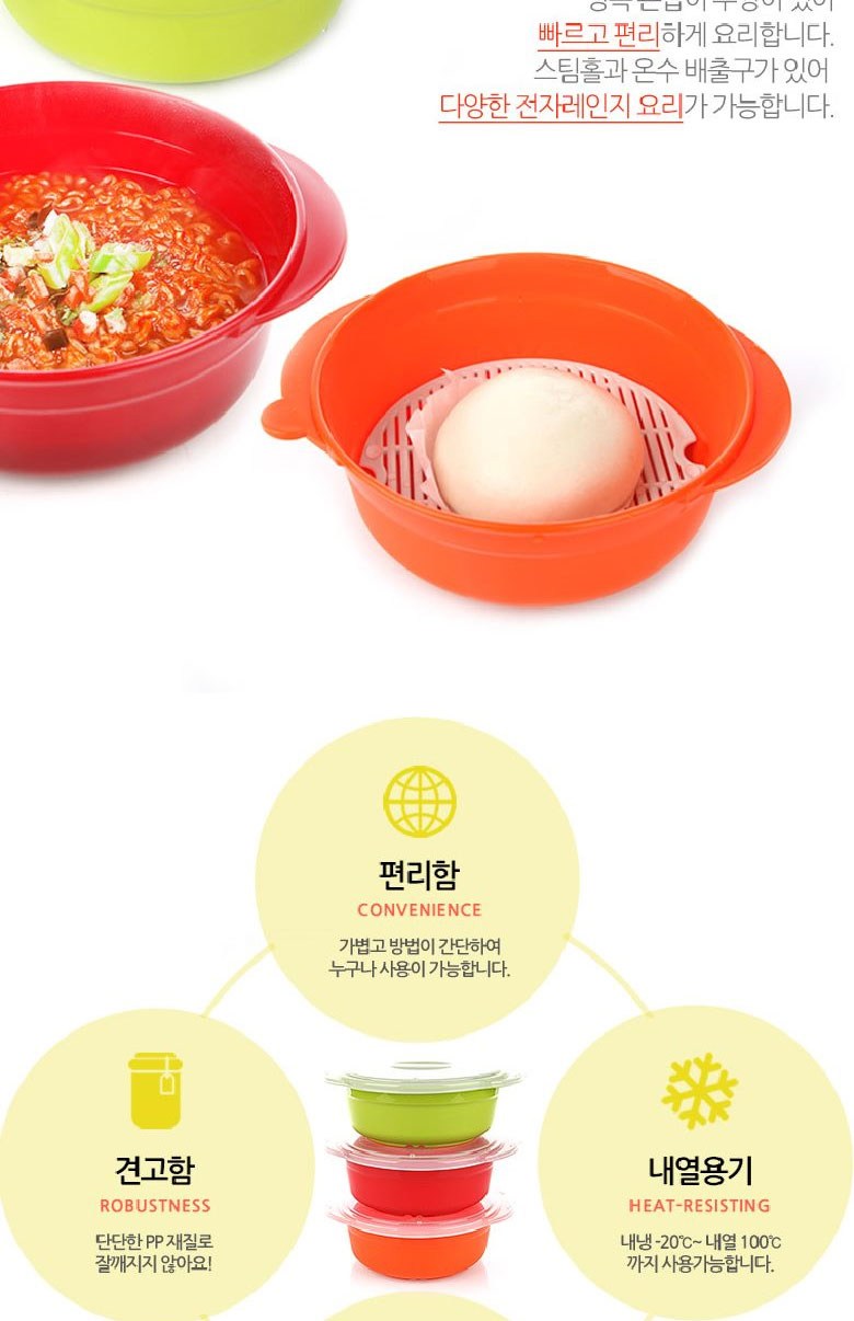 - 스팀홀과 온수 배출구가 있어 전자레인지에 사용 가능