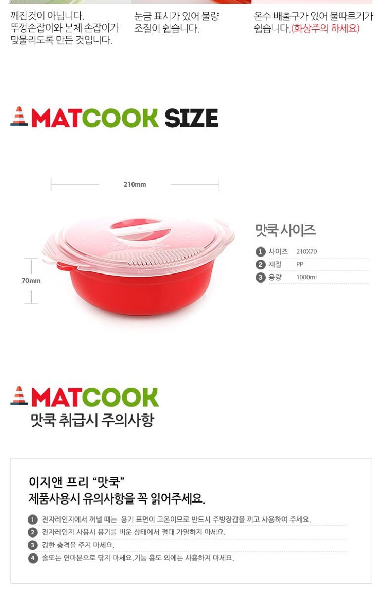 - 뚜껑 온수 배출구가 있어 편하고 빠르게 요리 가능