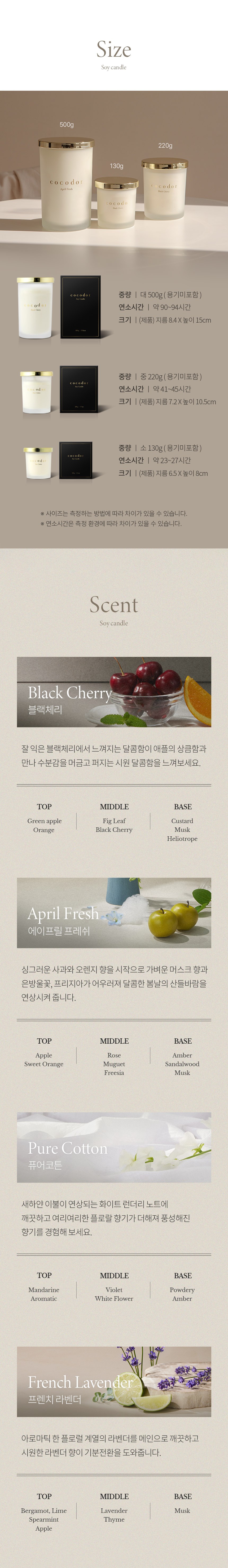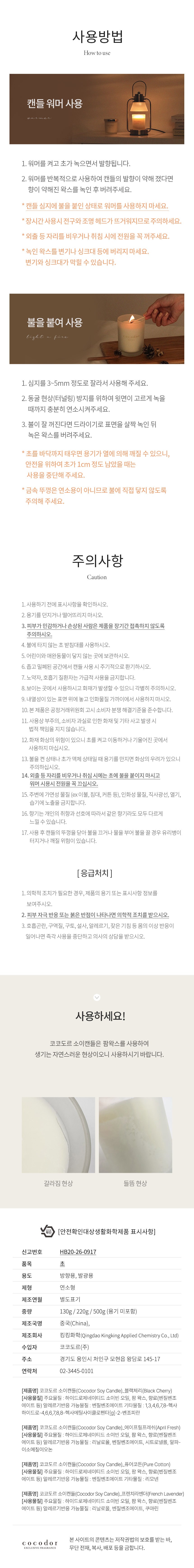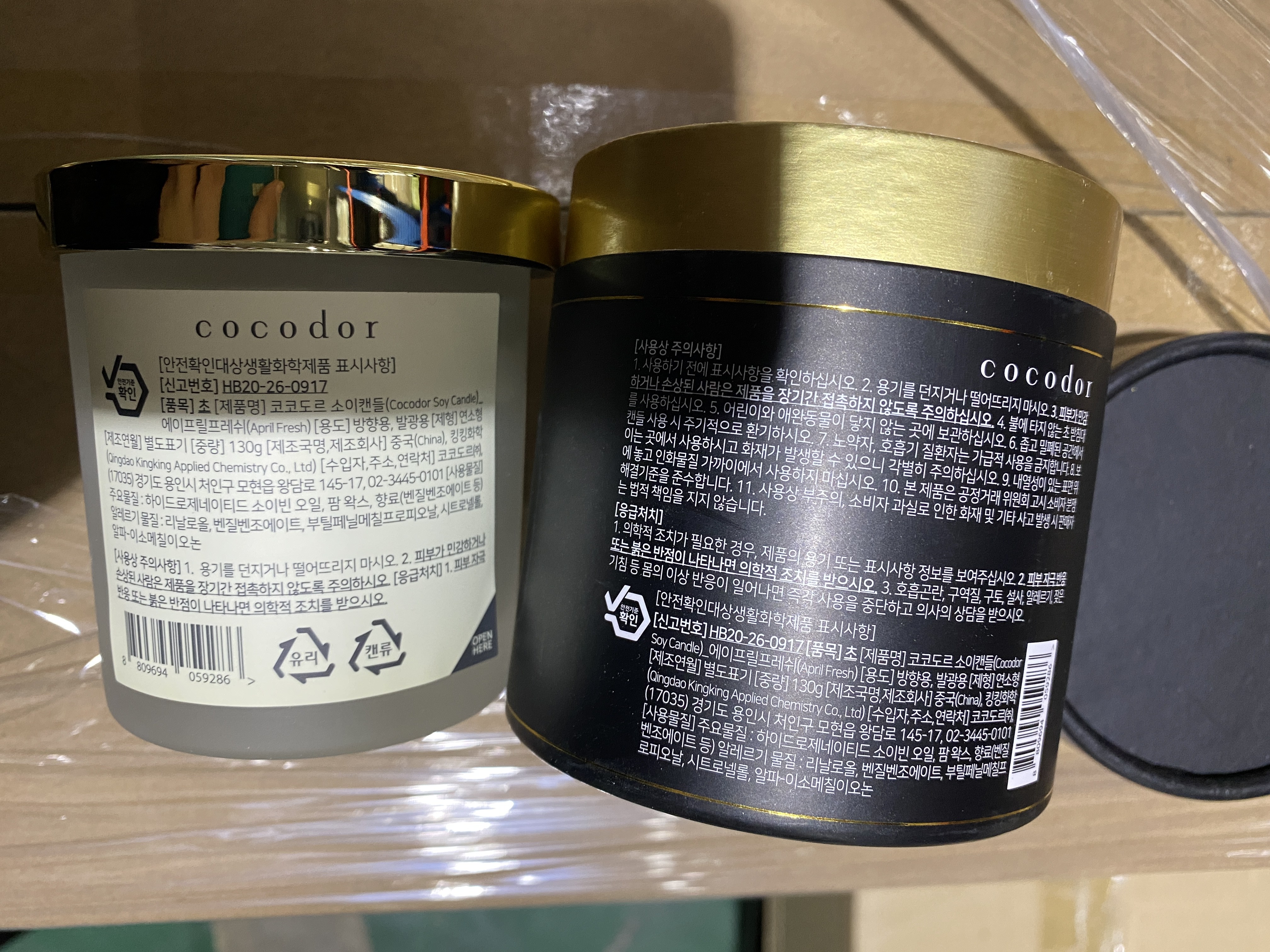 | 품목 및 제품명 | 초/코코도르 소이캔들(Cocod'or Soy Candle)_에이프릴프레쉬(April Fresh) | 용도(표백제의 경우 계열을 함께표시) 및 제형 | 방향용,발광용/연소형 |