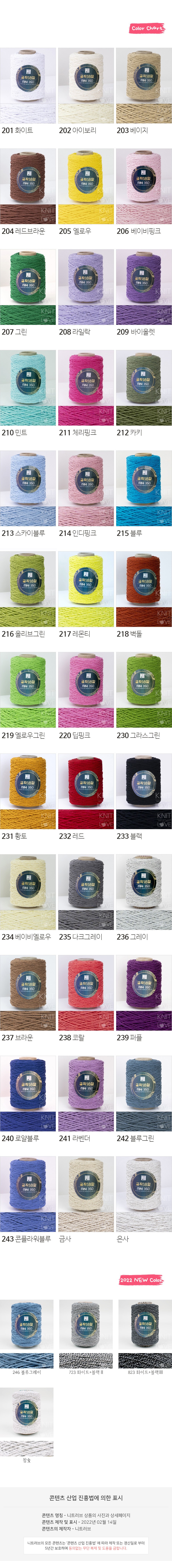 | 품명 및 모델명 | 공작표 순면 색사 18합 미니 350 | 인증/허가 사항 | 해당없음 |