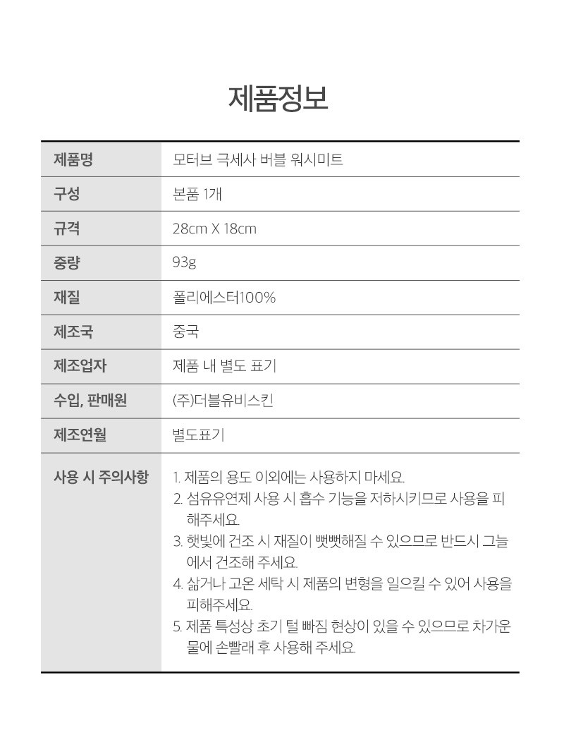 | 품명 및 모델명 | 모터브 극세사 버블 워시미트 | 동일모델 출시년월 | 업체미제공 |