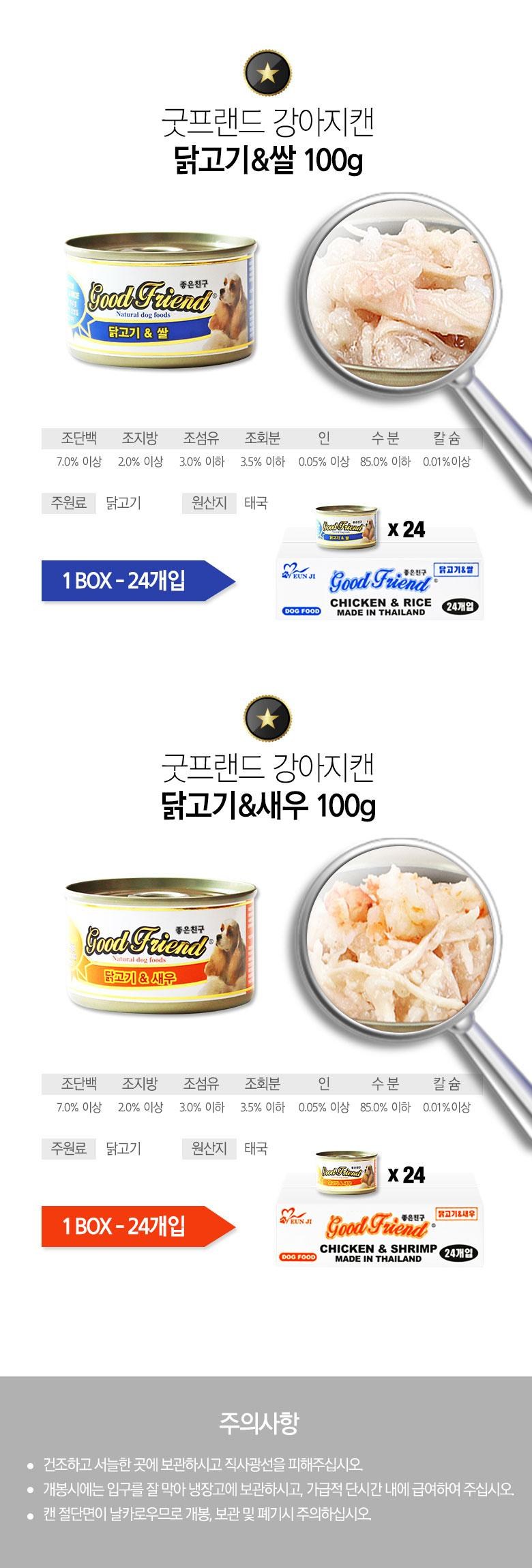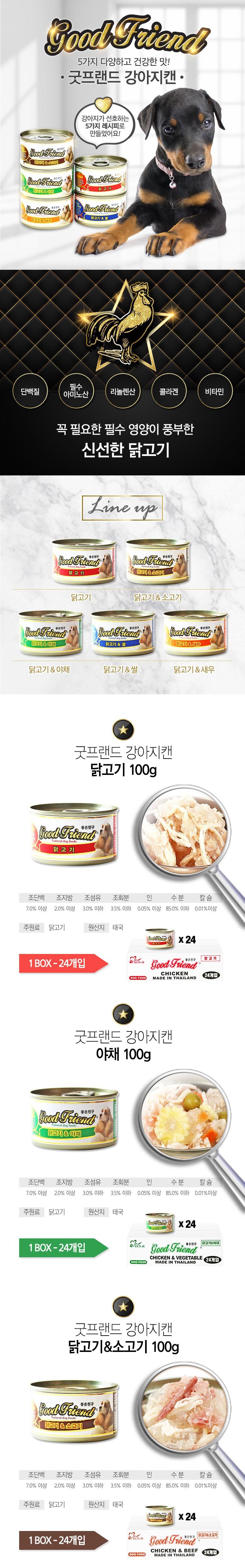 | 품명 및 모델명 | 굿프랜드 5종혼합 강아지캔 100G 24개입 | 인증/허가 사항 | 해당사항없음 |