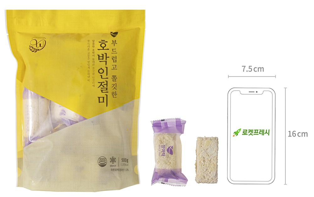 쫀득쫀득한 식감을 자랑하는 호박인절미예요. 베어 물면 씹을수록 번지는 고소하고 달콤한 풍미가 일품이지요. 한 개씩 개별 포장되어 있어 간편하게 즐길 수 있답니다. 향긋한 차나 시원한 음료를 곁들여 정갈한 단맛을 느껴보세요.