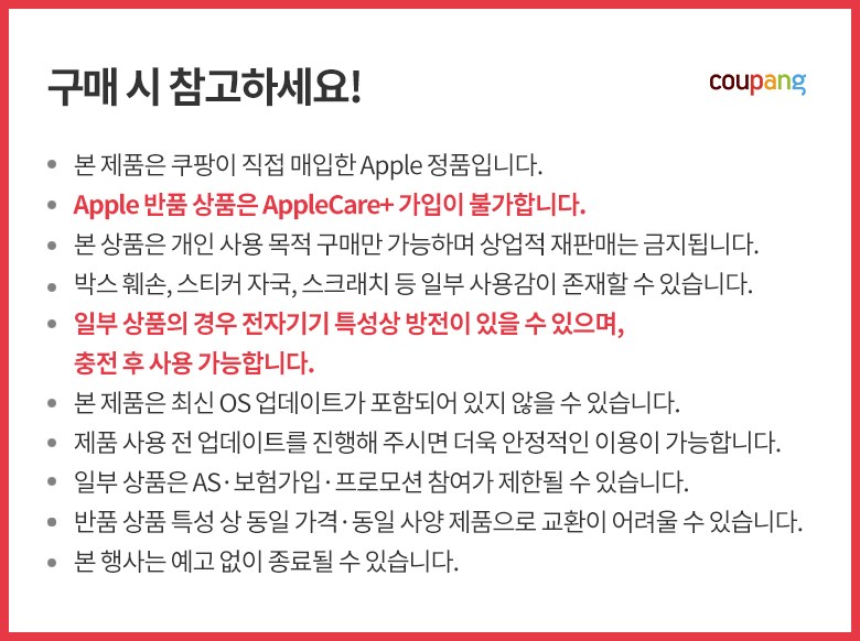 | 출시년월 | 알 수 없음(업체미제공) | 제조자(수입자) | 애플 / 애플코리아유한회사 |