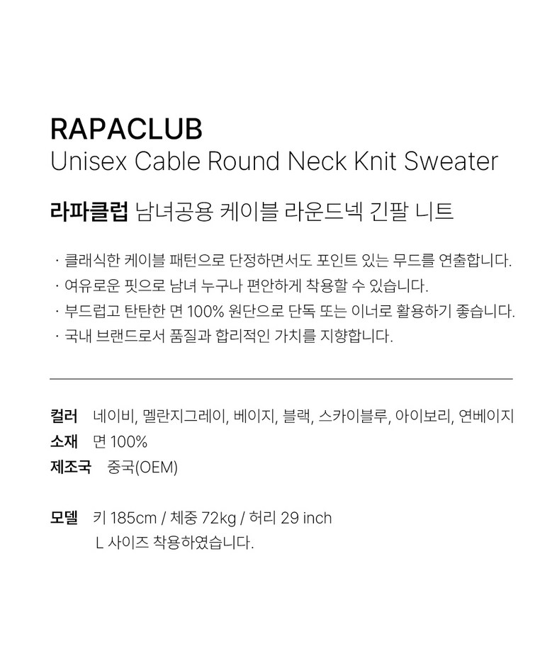 | 치수 | 상품 상세페이지 참조 | 제조자(수입자) | 라파클럽 / 업체미제공 |