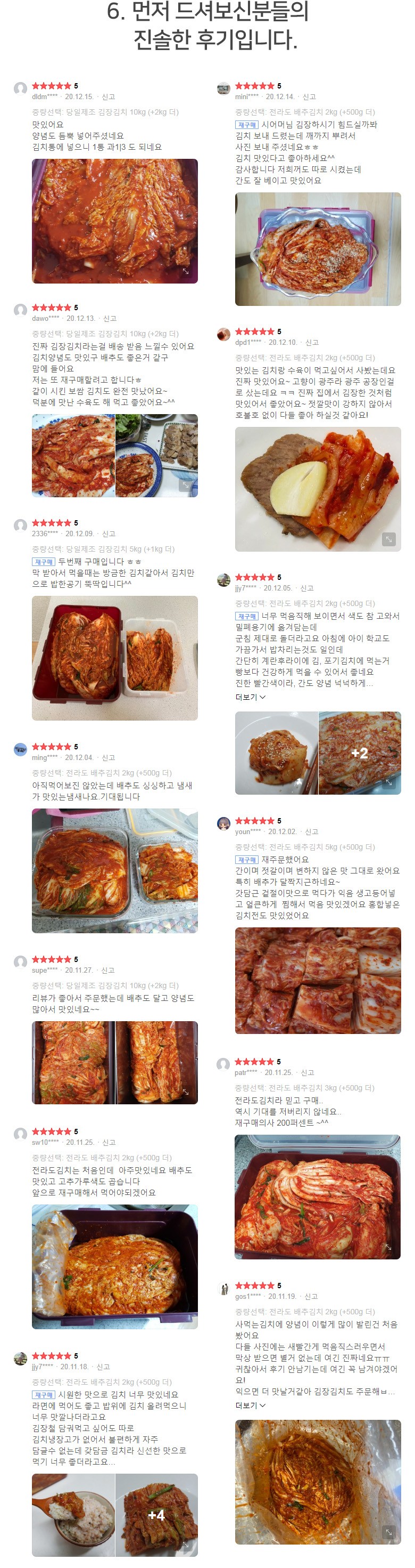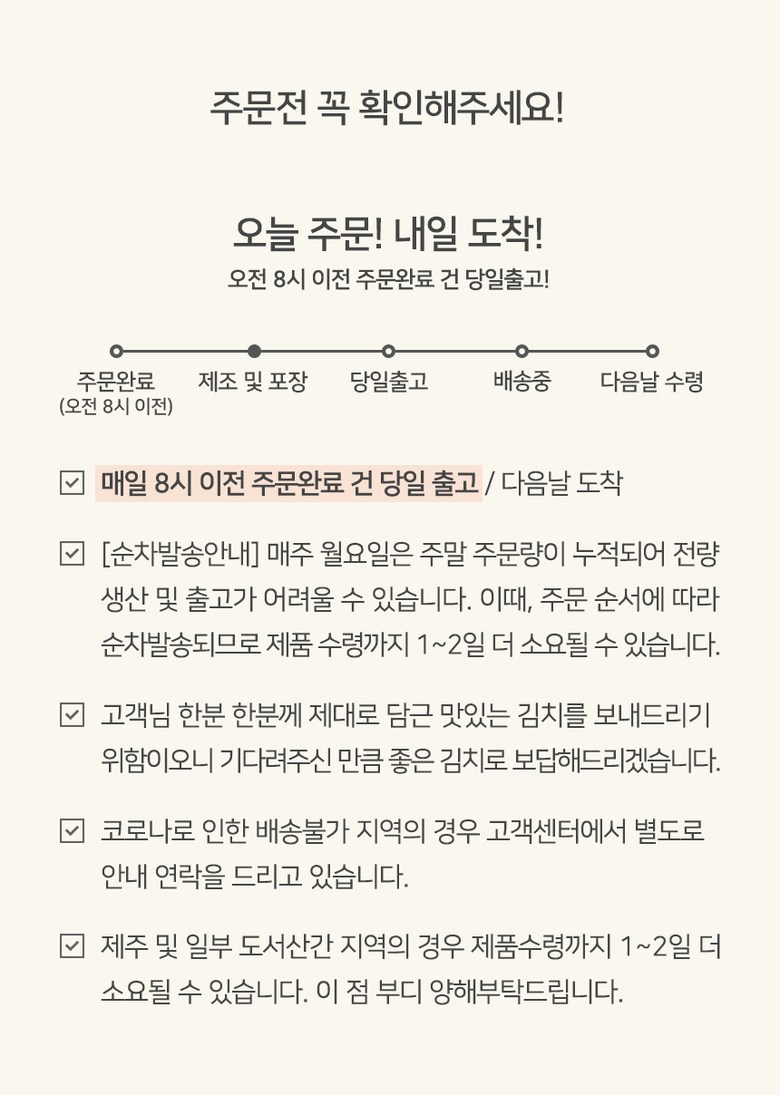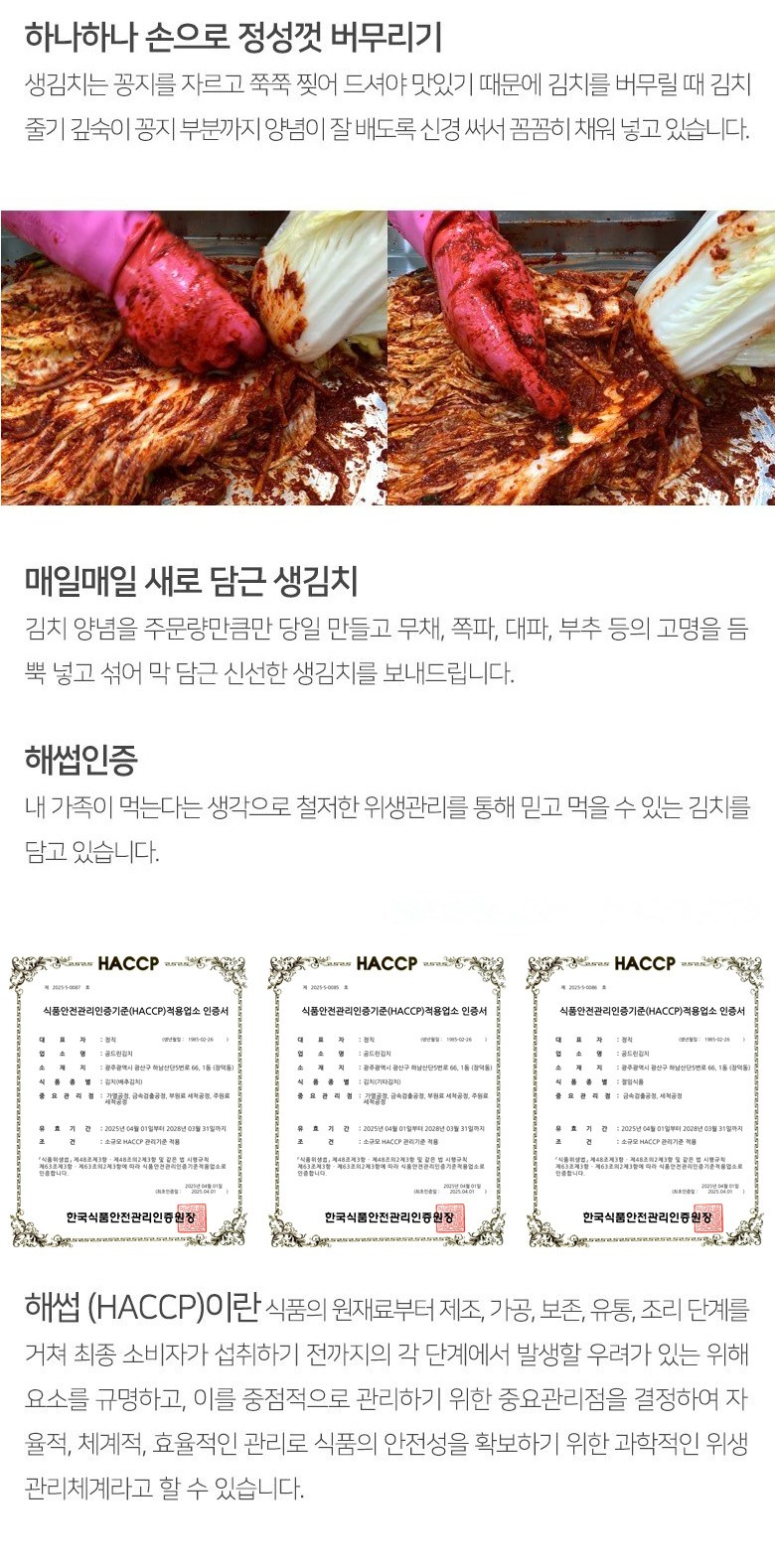 | 생산자 및 소재지 | 상품상세참조 | 제조연월일, 소비기한 또는 품질유지기한 | 김장김치는 매일 막 담근 싱싱한 생김치를 보내드립니다./제조일로부터 80일 |