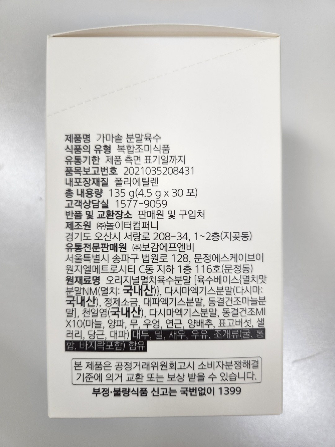 | 포장단위별 내용물의 용량(중량), 수량 | 135g x 2개,1개 | 원재료명 및 함량 | 컨텐츠 참조 |
