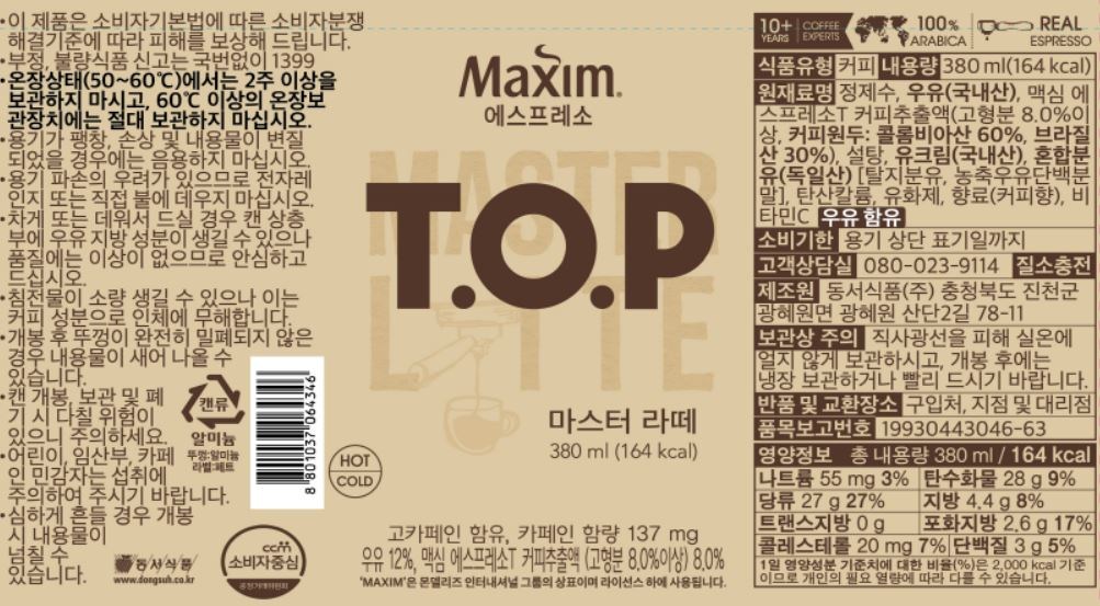 | 포장단위별 내용물의 용량(중량), 수량 | 380ml × 24개 , 2개 | 원재료명 및 함량 | 컨텐츠 참조 |