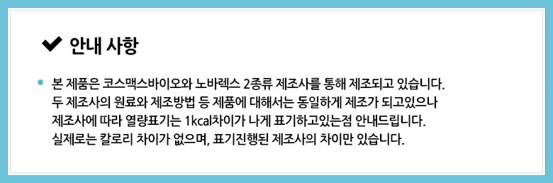| 원료명 및 함량 | 컨텐츠 참조 | 영양정보 | 컨텐츠 참조 |