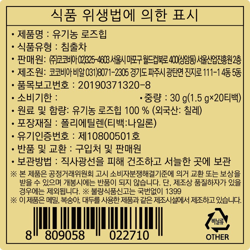 - 허브티/꽃차 종류: 로즈힙