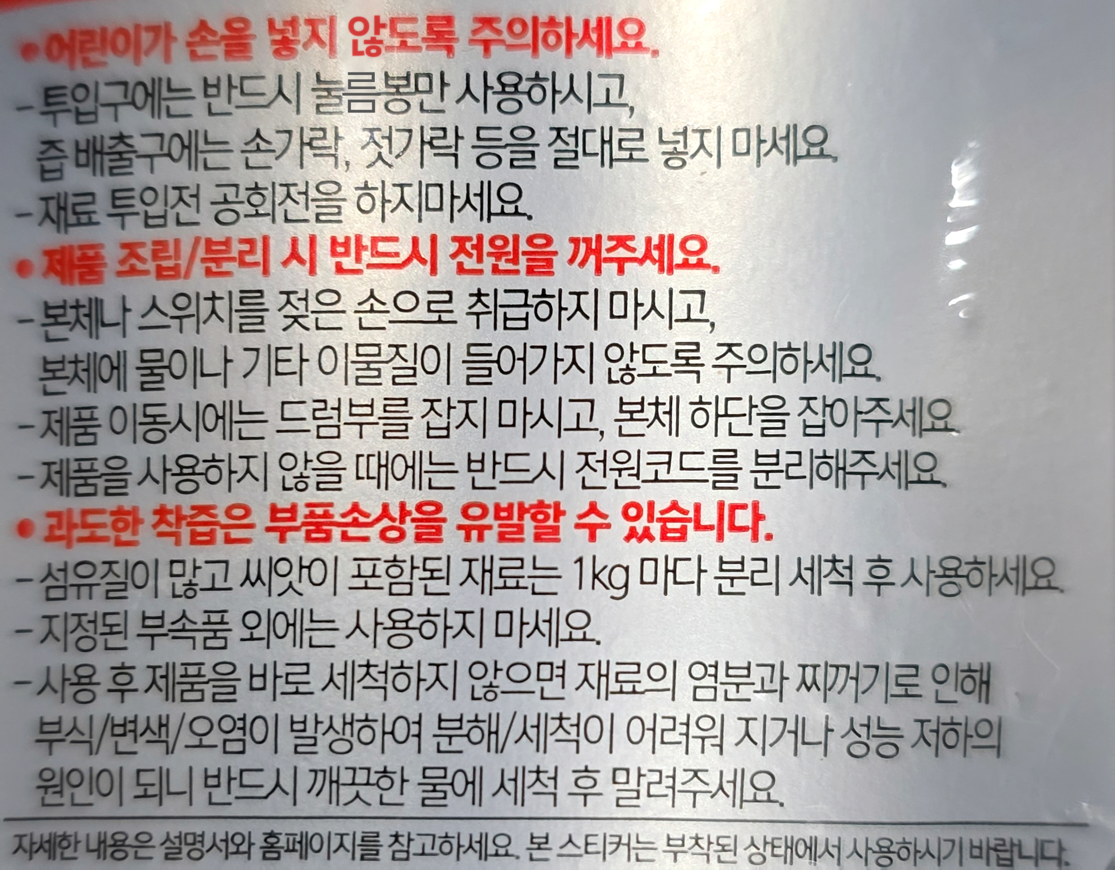 - 찌꺼기 자동분리 여부: 찌꺼기 자동분리