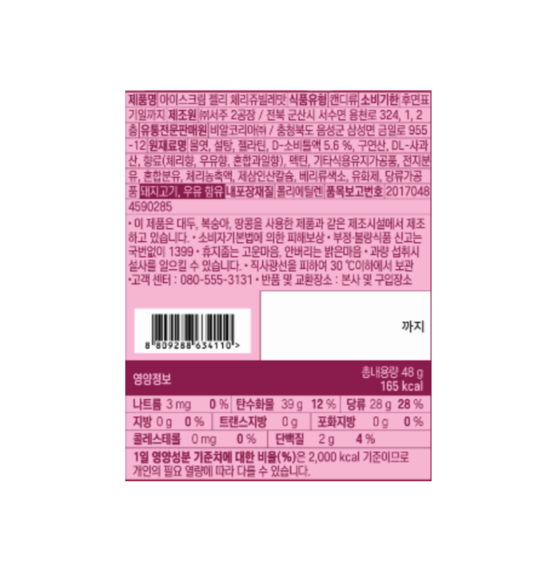 | 제품명 | 컨텐츠 참조 | 식품의 유형 | 캔디류 |