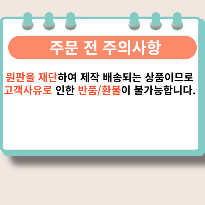 - ㆍ모니터 해상도의 차이로 인해 색상이나 이미지가 실제와 달라, 고객이 단순 변심으로 교환/반품을 무료로 요청하는 경우