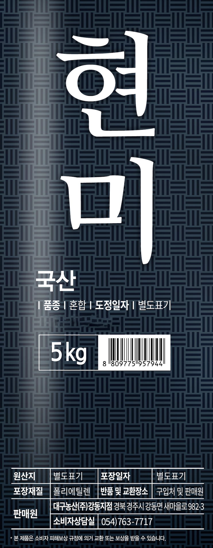 | 제조연월일, 소비기한 또는 품질유지기한 | 제조년월일 : 2025년 10월 31일 이후인 제조상품<br />생산일자 : 2025 | 세부 품목군별 표시사항 | 농수산물 : -유전자변형 : 해당없음 - 지리적 표시사항 : 해당없음 |