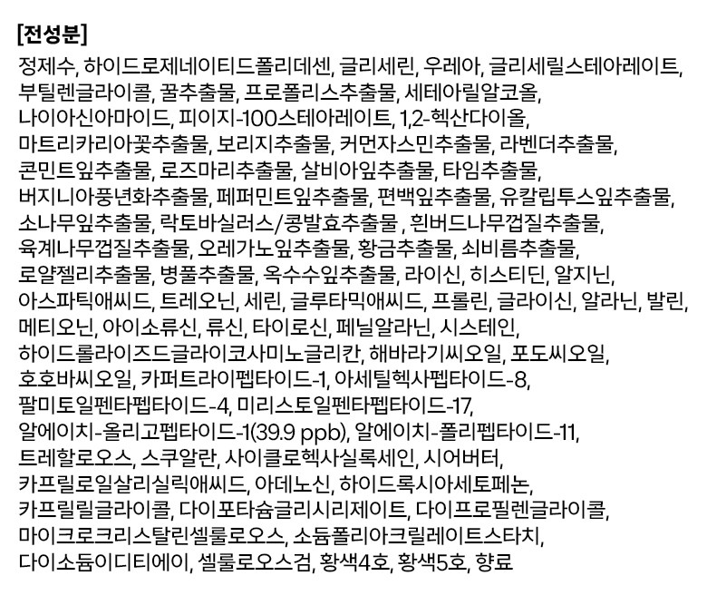 | 화장품제조업자, 화장품책임판매업자 및 맞춤형화장품판매업자 | 컨텐츠 참조 | 제조국 | 대한민국 |