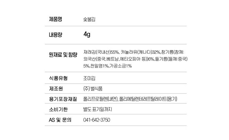 | 제품명 | 상품 상세페이지 참조 | 식품의 유형 | 상품 상세페이지 참조 |