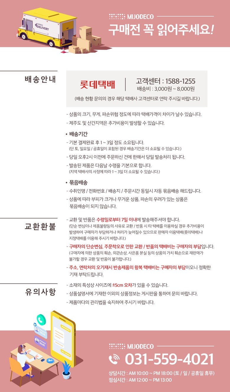 - ㆍ모니터 해상도의 차이로 인해 색상이나 이미지가 실제와 달라, 고객이 단순 변심으로 교환/반품을 무료로 요청하는 경우