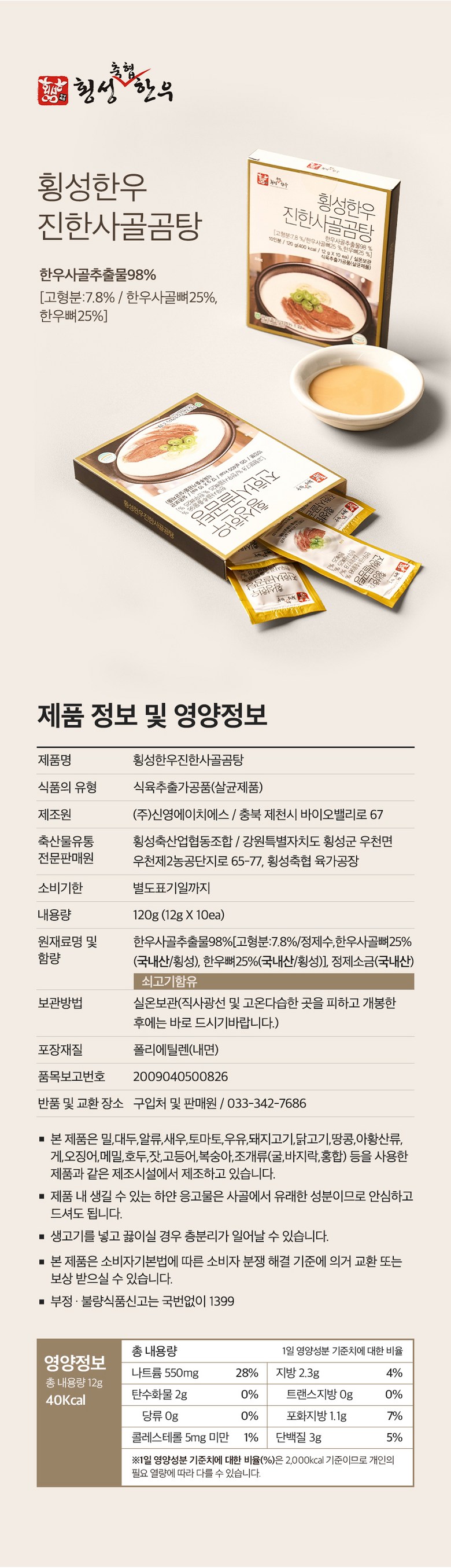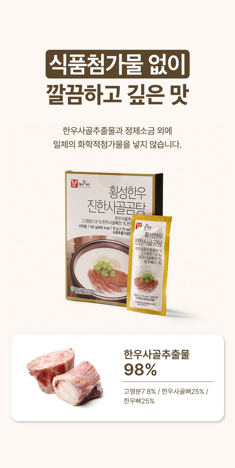 | 제품명 | 횡성한우 진한사골곰탕 | 식품의 유형 | 식육추출가공품(살균제품) |