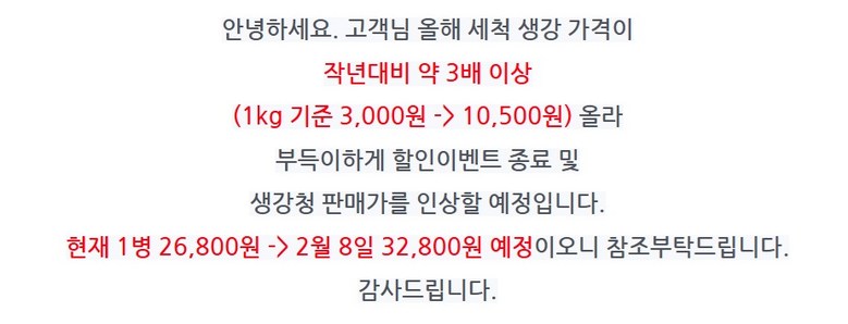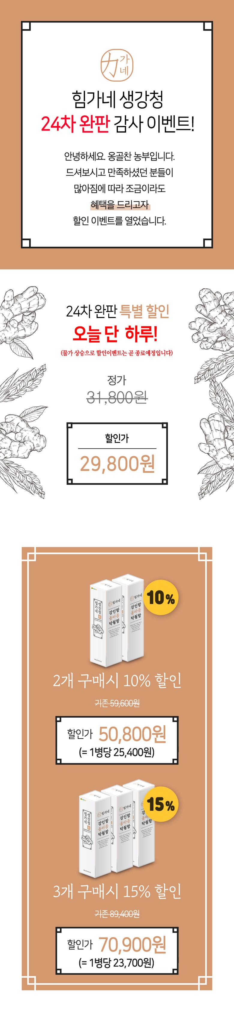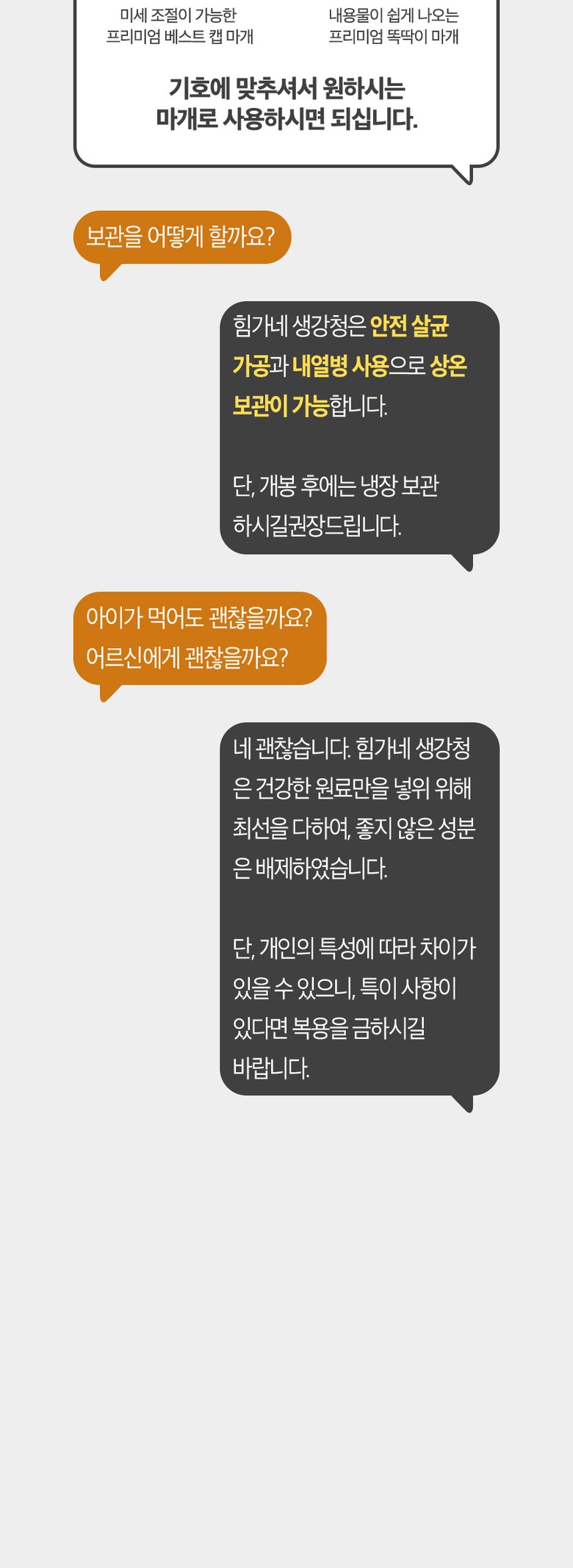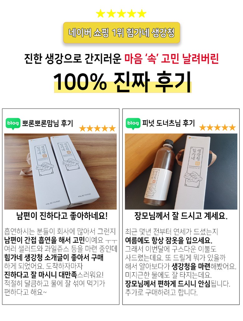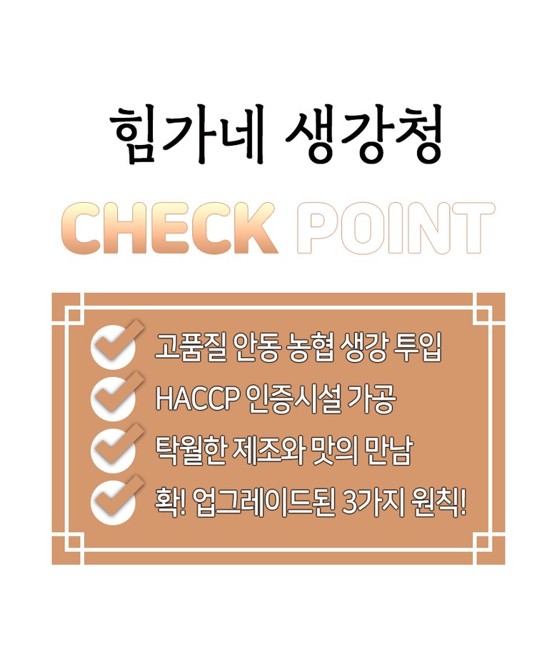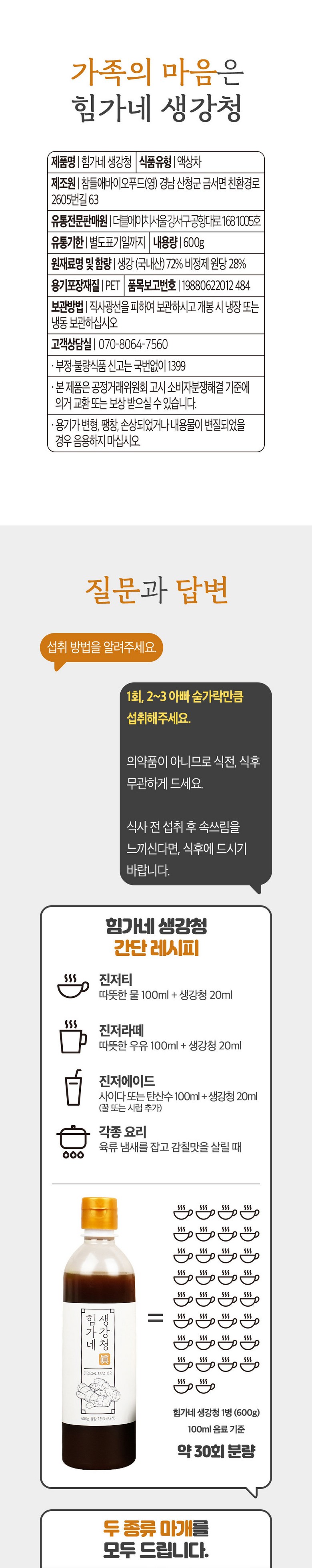 | 품목 또는 명칭 | 힘가네 생강청 | 포장단위별 내용물의 용량(중량),수량,크기 | 상품 상세페이지 참조 |